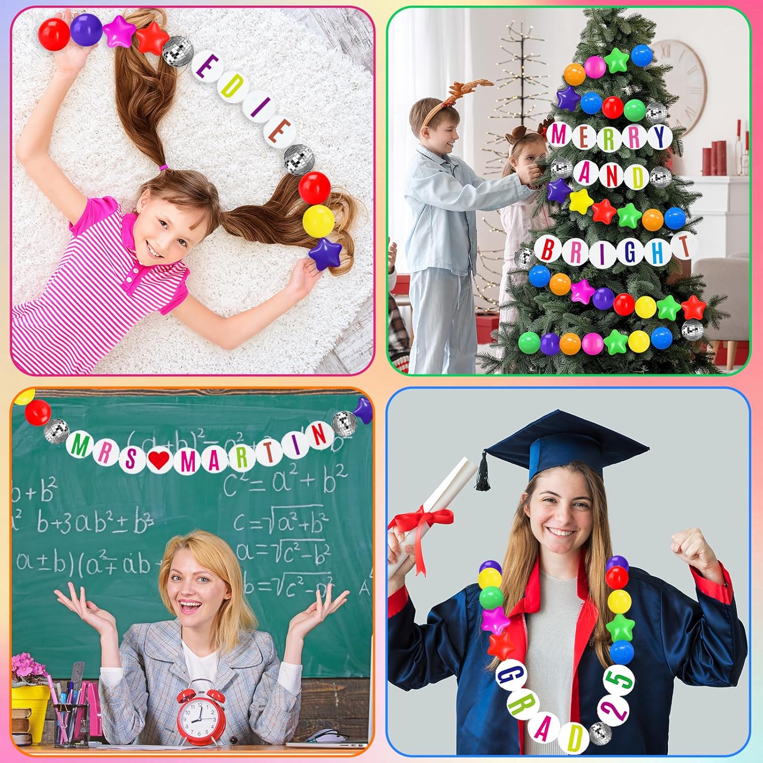- Easy DIY: stick the letter stickers on the foam circle to form the word combination you want, tie the fishing line to the embroidery needle, and then pass through the disco ball, foam circle, and ball in turn, you can easily create any banner; No need to buy separate custom banners