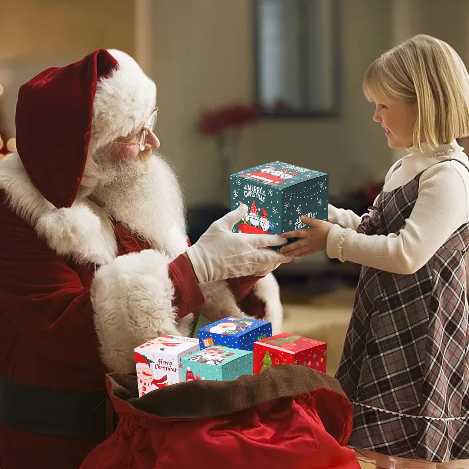 COTOPHER 20 Pcs Christmas Gift Boxes, 6" x 6" x 6" Xmas Candy Boxes for Gift Giving, Paper Treat Ornament Gift Box Decorative Christmas Goodie Box for School Home Holiday Party Favors Supplies