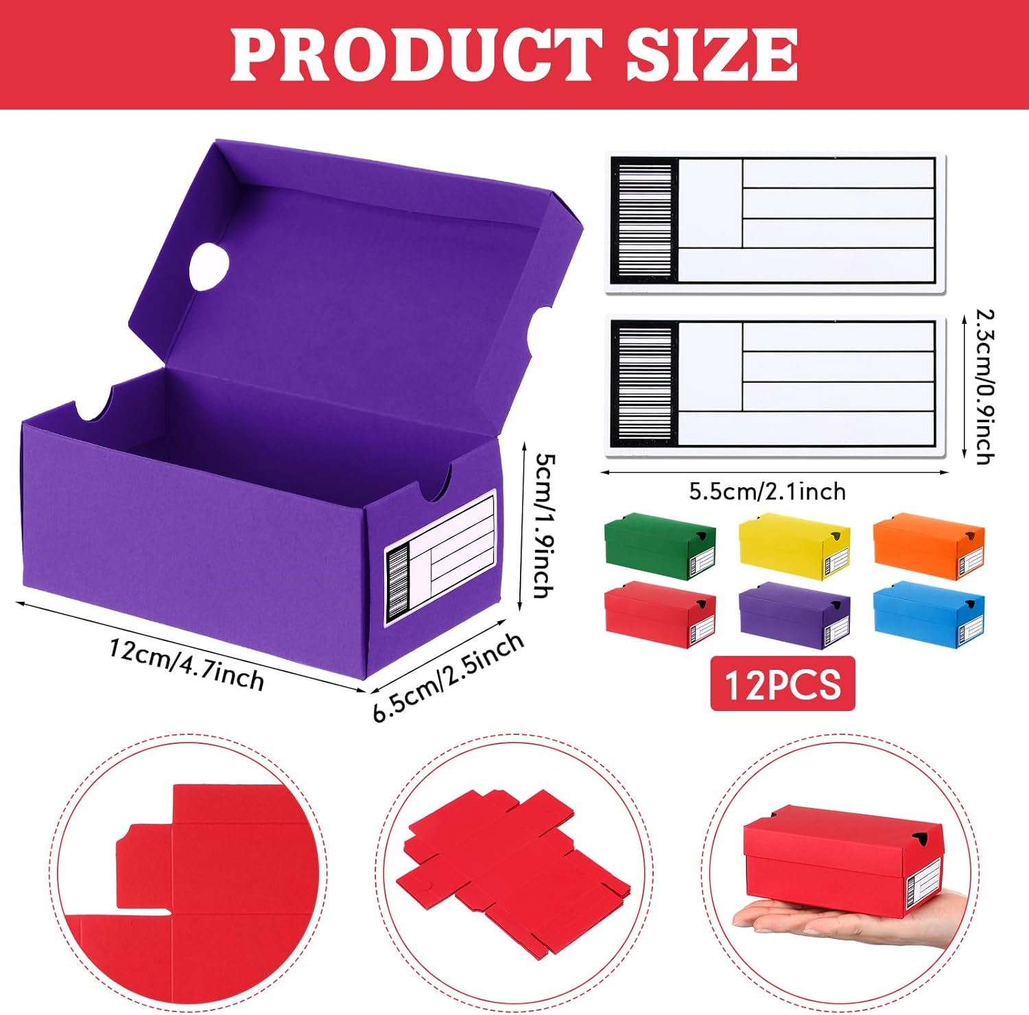 - Package Includes: 12 pieces of small gift boxes (measuring at 4.72 x 2.56 x 1.97 inch), 12 pieces of white adhesive stickers, and 100 pieces of clear adhesive dots, suitable for holding some food, such as candies, small cookies, snacks, gifts or small toys, etc., so that your decorations stand out at the party