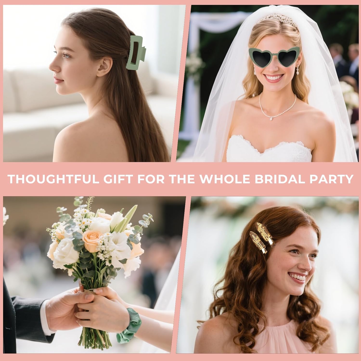Sage Green Bridesmaid Gifts for Proposal, 8PCS Girls Gift Set with Hair Claws, Scrunchies, Makeup Clips & Heart Sunglasses, Wedding Bachelorette Party Favors, Birthday Gifts for Women Teens