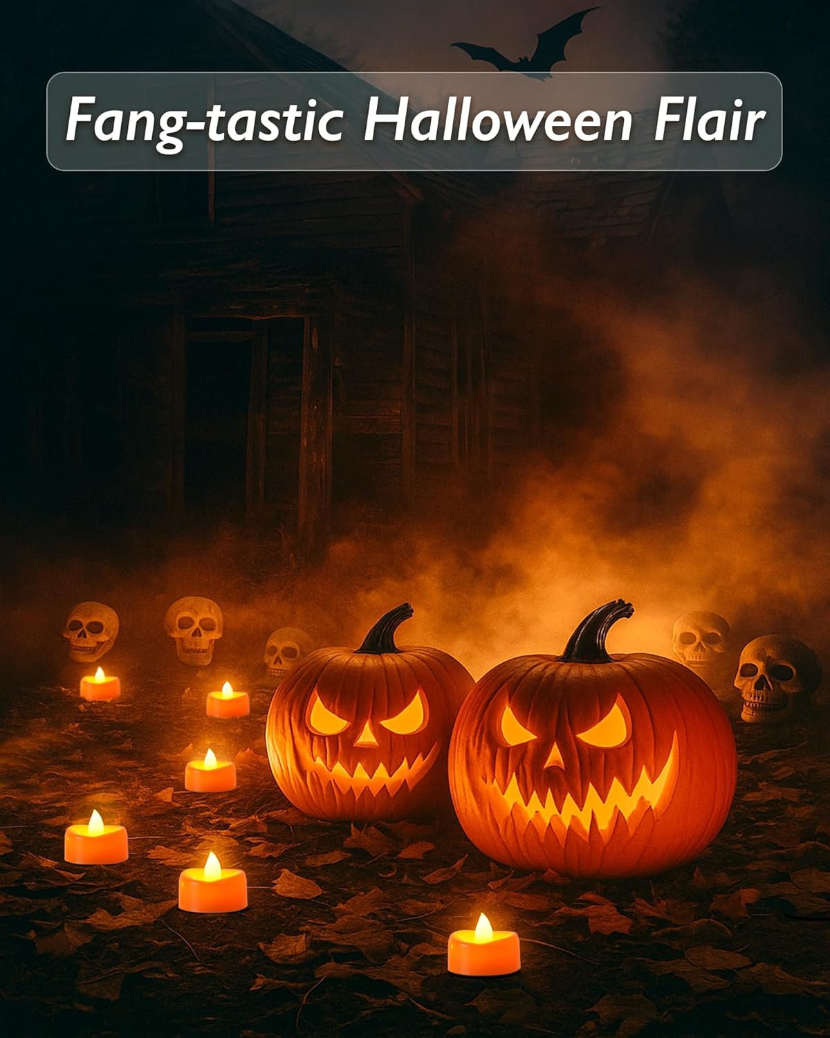 Raycare Orange LED Tea Lights Battery Operated, 200+Hour Flickering Votive Candles,Realistic Fake Flameless Tea Lights for Wedding Party Halloween Thanksgiving Christmas Decorations, 24 Pack