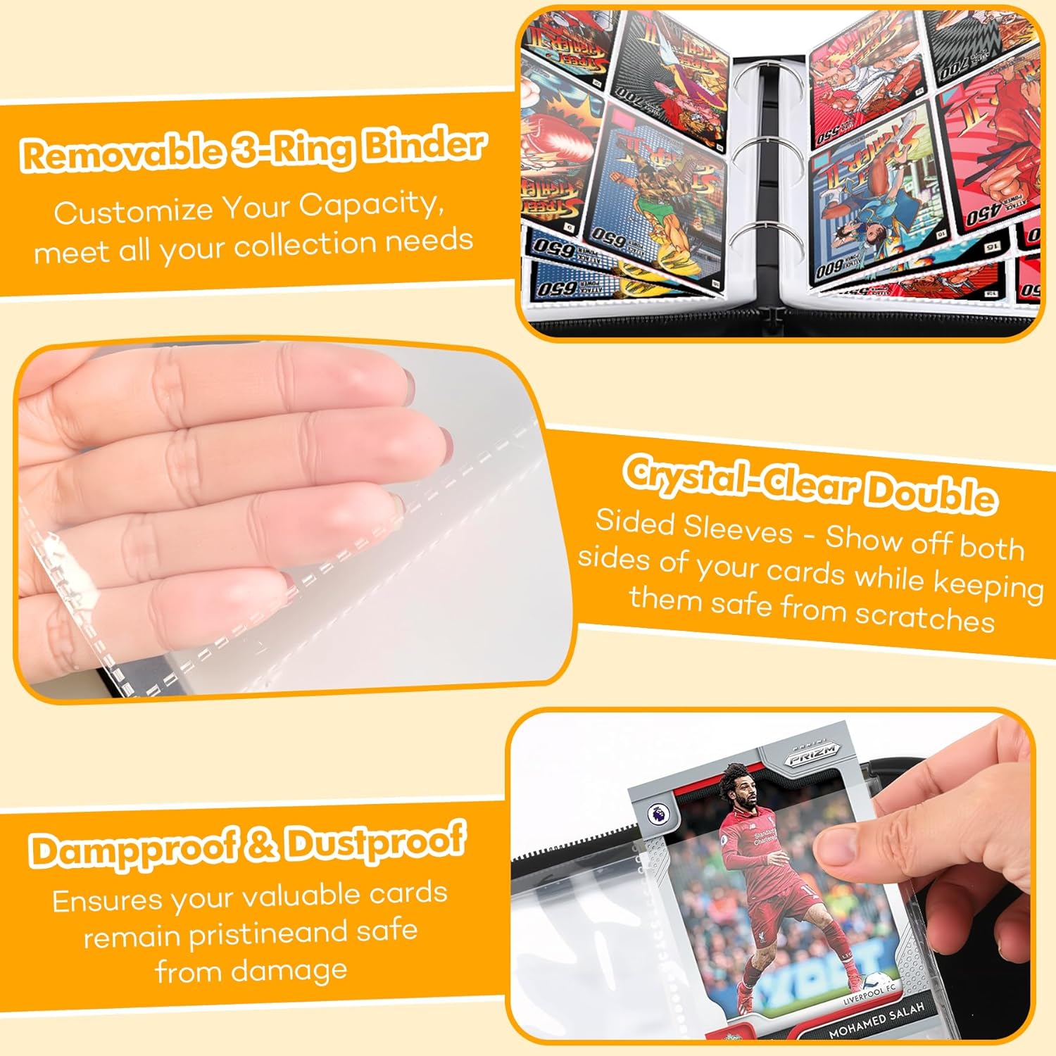- πγ Crystal-Clear Sleeves for Easy Viewing γ- Showcase your collection without removing a single card. The ultra-clear, scratch-resistant sleeves offer sharp visibility and long-lasting protection, so your sports and trading cards look just as impressive as the day you collected them.