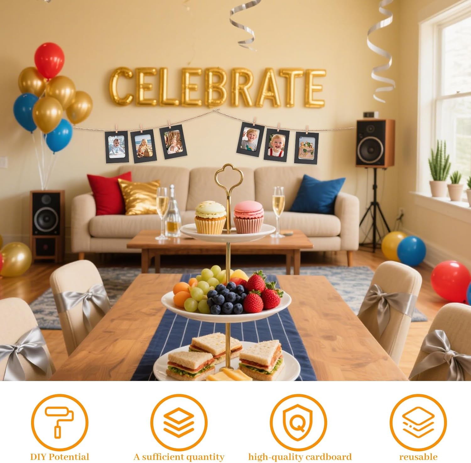 100 Pack Paper Picture Frames, 4x6 Inch Photo Strip Frame Hanging Photo Display Banner, Black Photo Holder with Wooden Clips and String for Wall Decor and Party Supplies