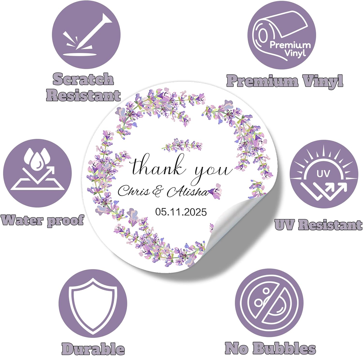 - Quality and Usage: This personalized name label is made of vinyl, which is glossy, waterproof and tear-resistant, can be easily torn off and easily pasted, suitable for most surfaces, and is an ideal choice for your wedding decoration