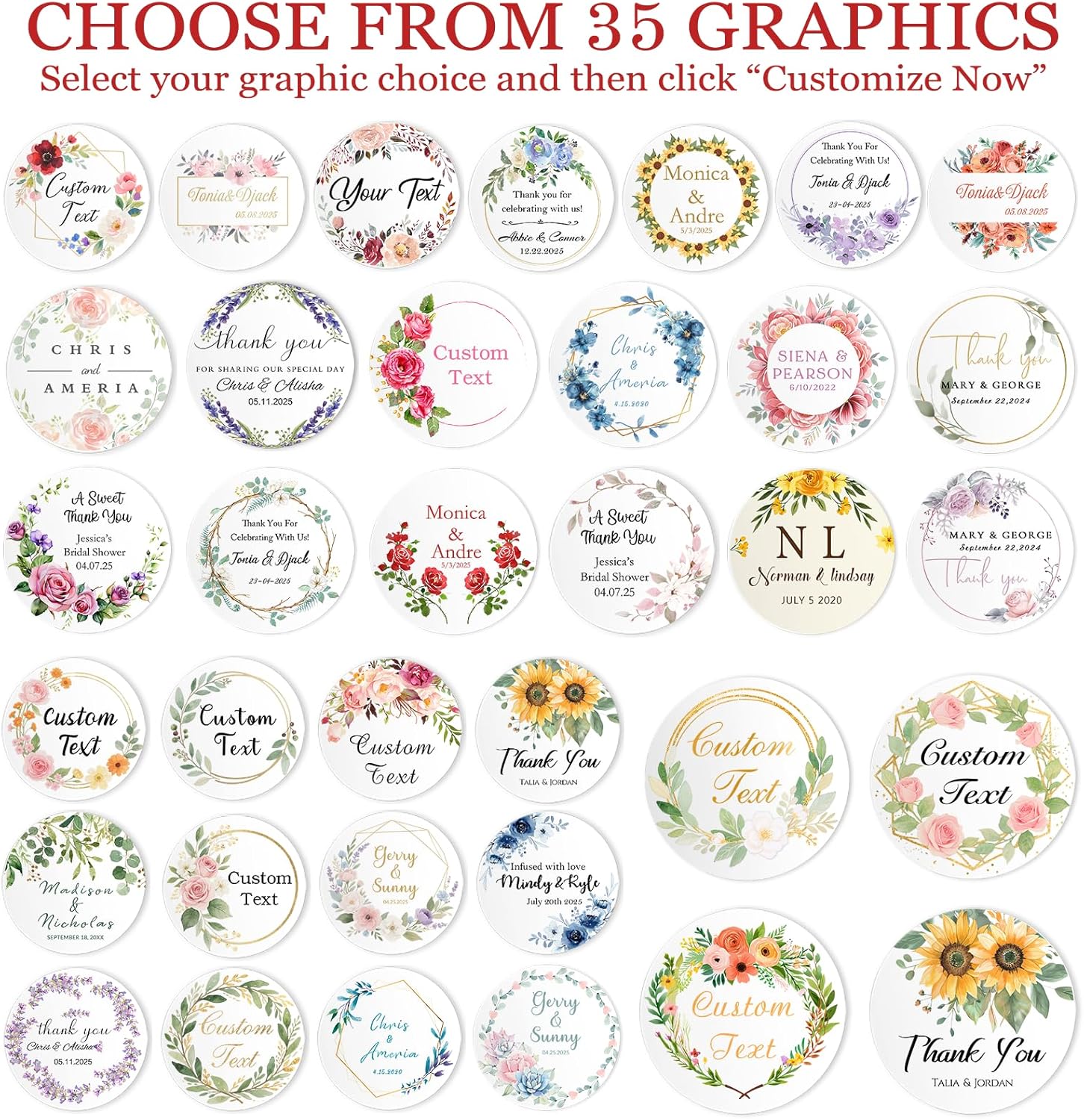 - Custom Stickers: Click the "Customize Now" button to design your own stickers, you can use the wreath design we provide, you can also upload any of your own logos, names, images and texts, we will meet your custom design needs