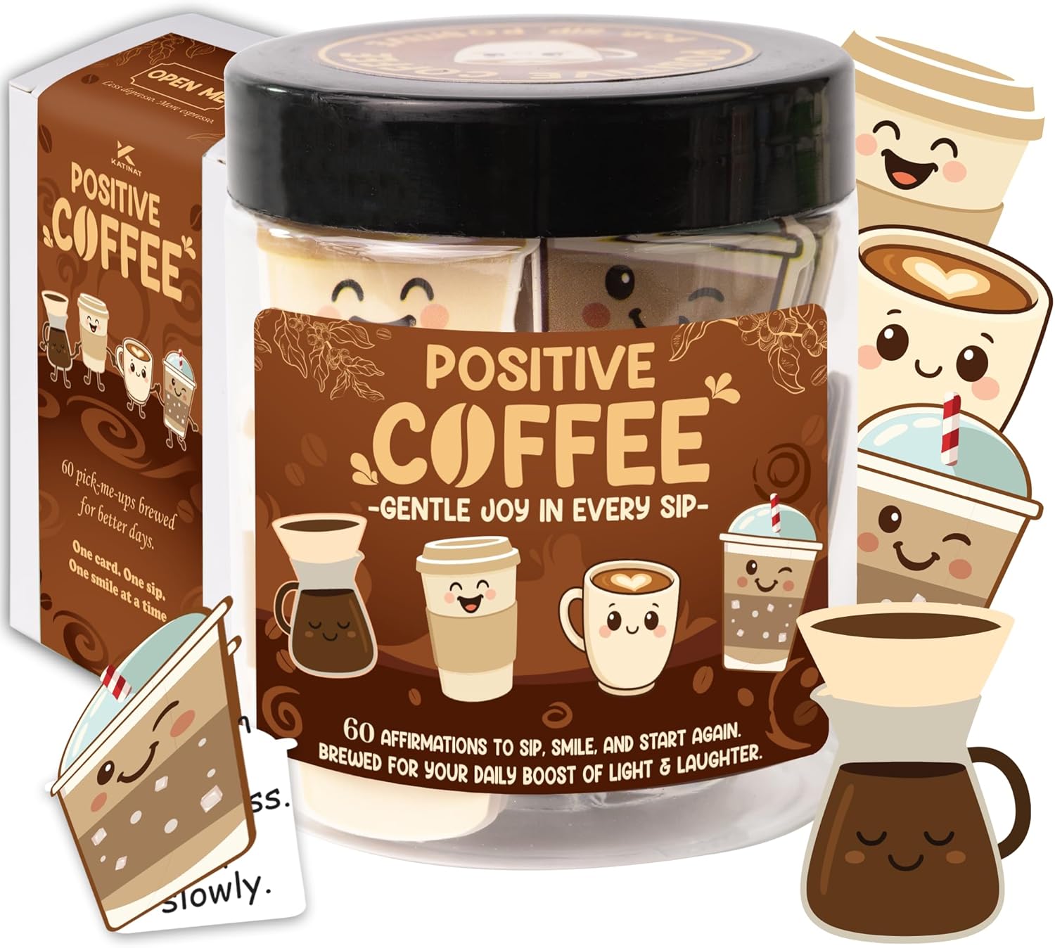 - ☕ Emotional Support Coffee in a Jar: 60 coffee-themed affirmation cards in latte cup shapes. A thoughtful, caffeine-free way to spread joy and encouragement every day.