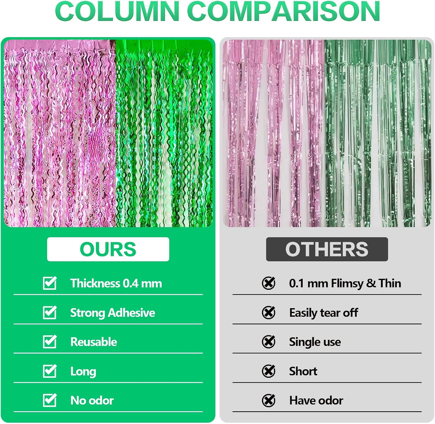 - 🎉SAFE & SHINY MATERIAL- This Pink and Green Wavy tinsel backdrop is made of high-quality shiny tinsel, non-toxic, odorless, and non-fading, safe for families with children and pets. Just transform your home into a shining streamers happy birthday decorations, and enjoy the party.