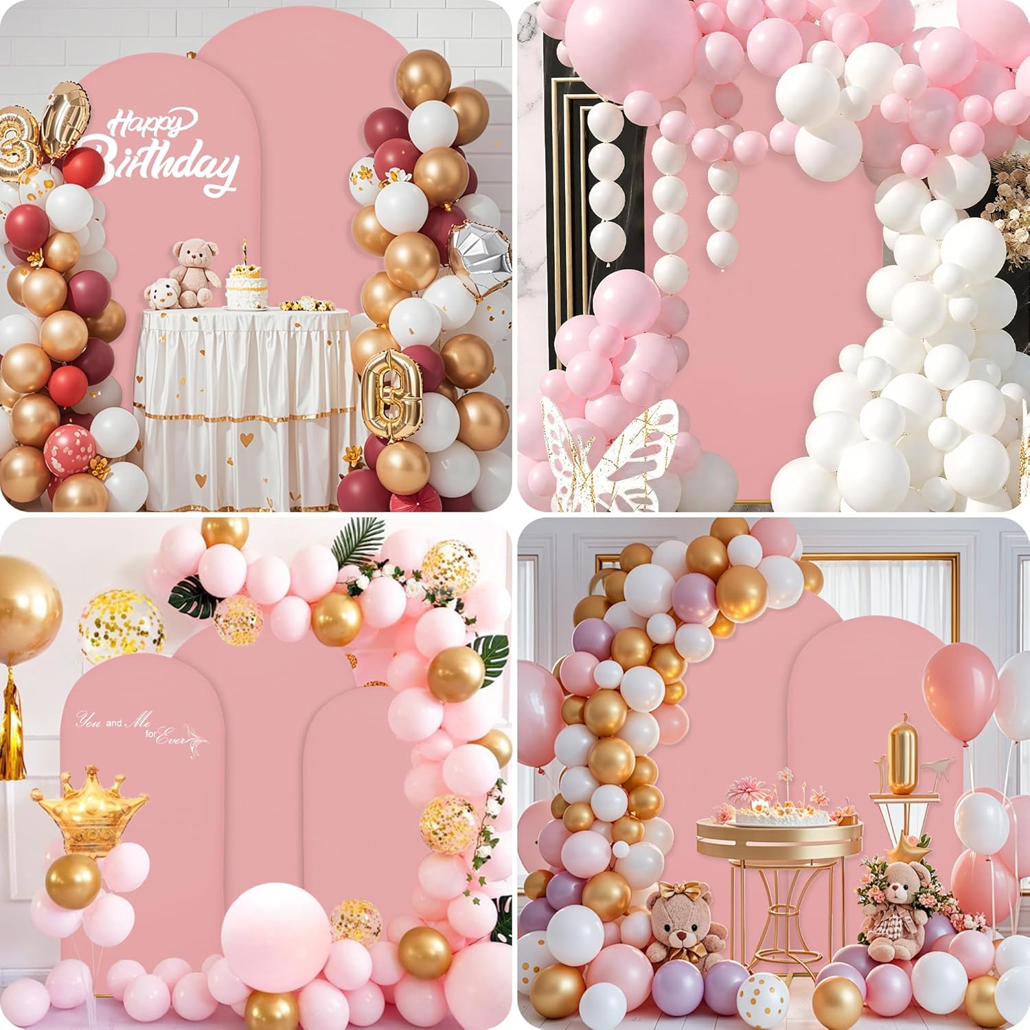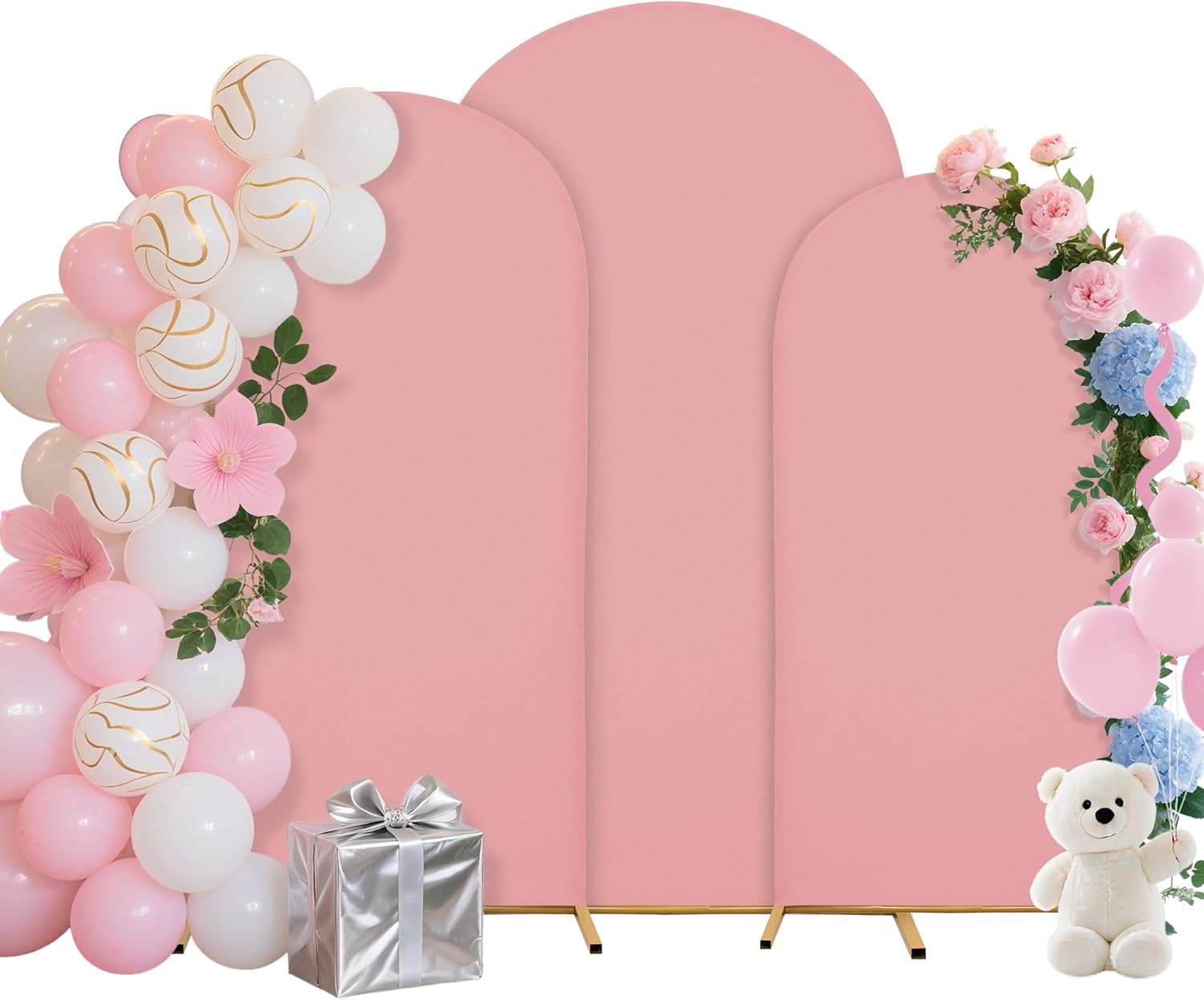 Wedding Arch Covers Arch Backdrop Cover Arch Stand Covers 7.2FT 6.6FT 6FT Set of 3 Arch Cover Spandex Fabric Stretchy Backdrop for Wedding Birthday Party Decoration Baby Shower (Light Pink)