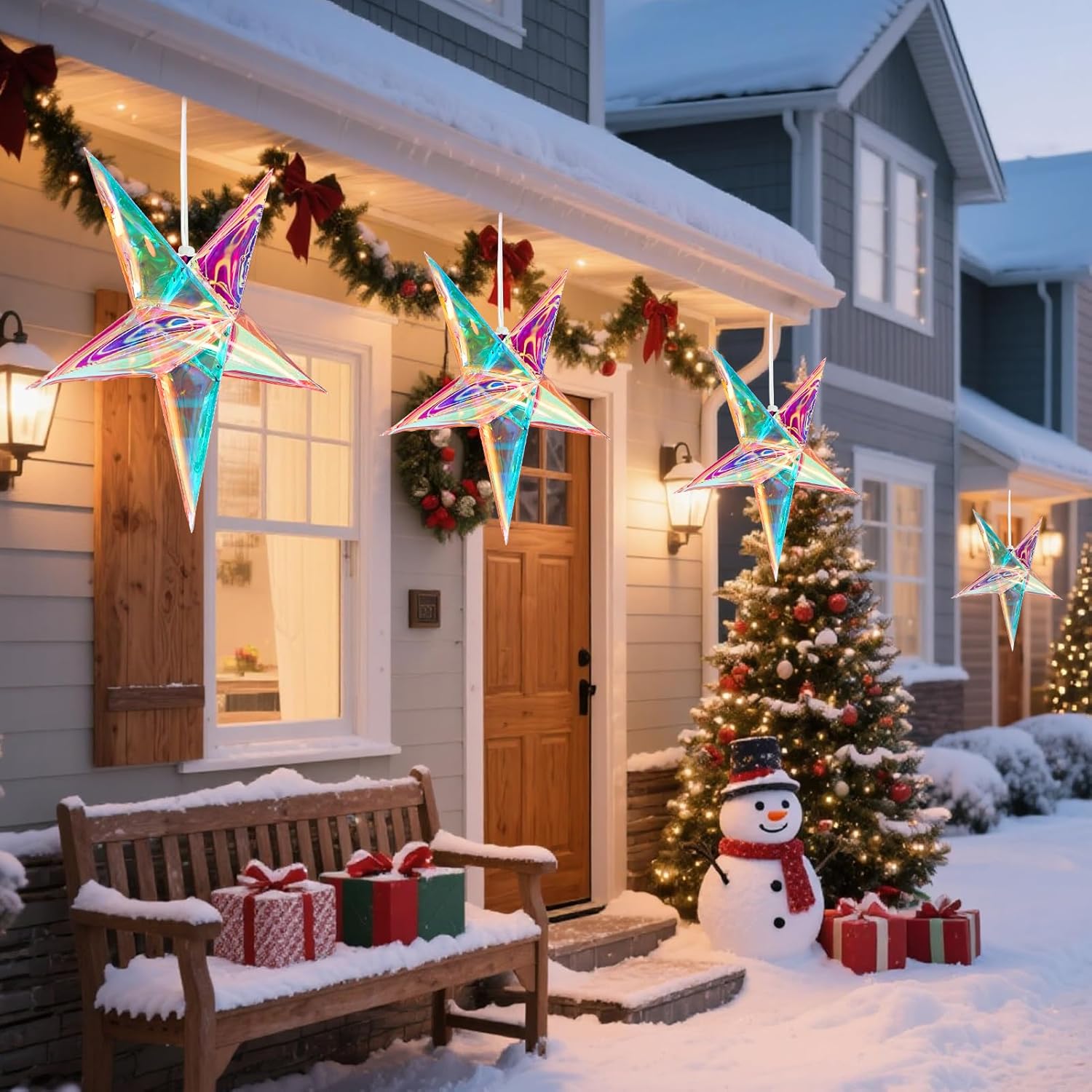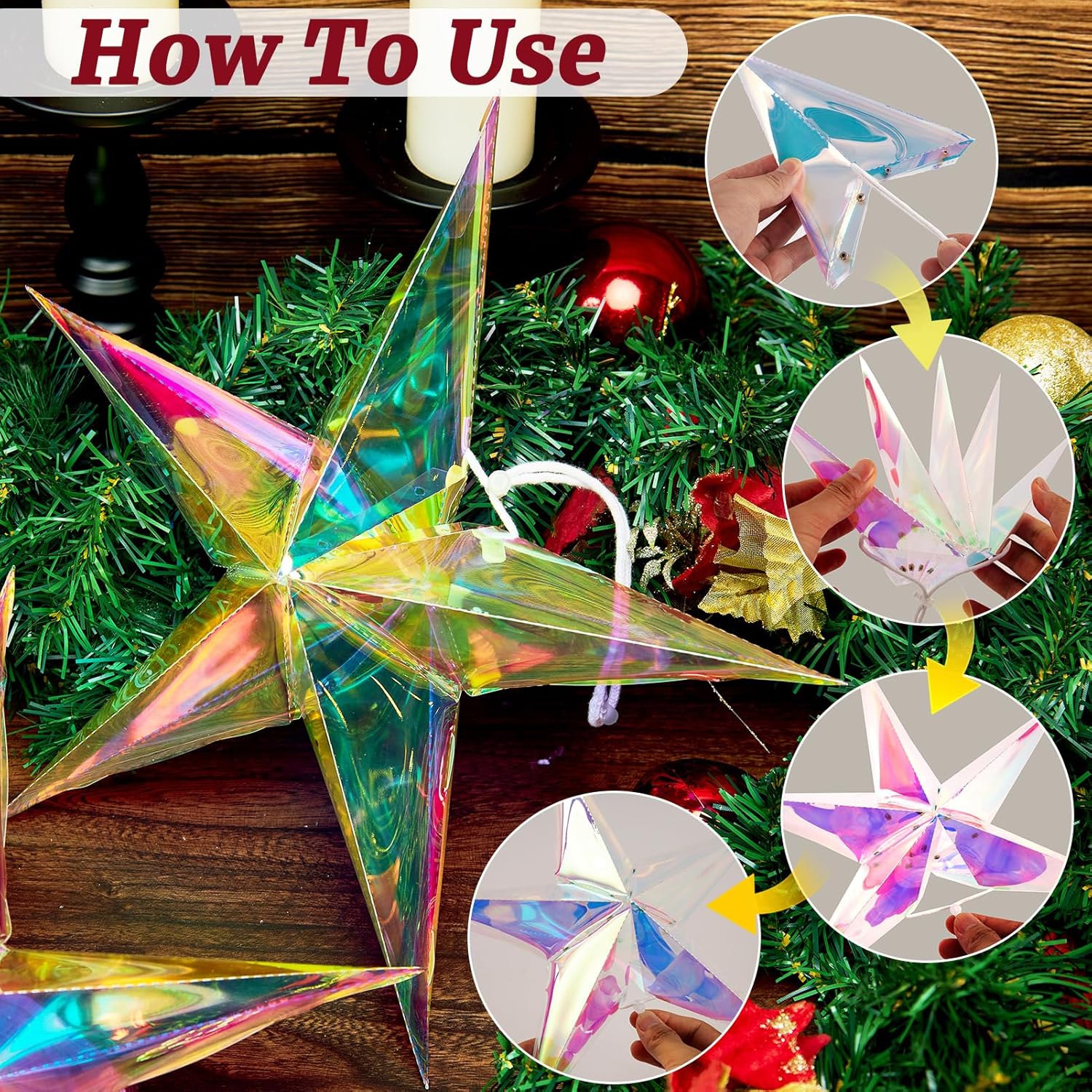 - Set of 3 Iridescent Star Ornaments:This delightful collection includes three unique star decorations that create a captivating display on your Christmas tree or festive venue.