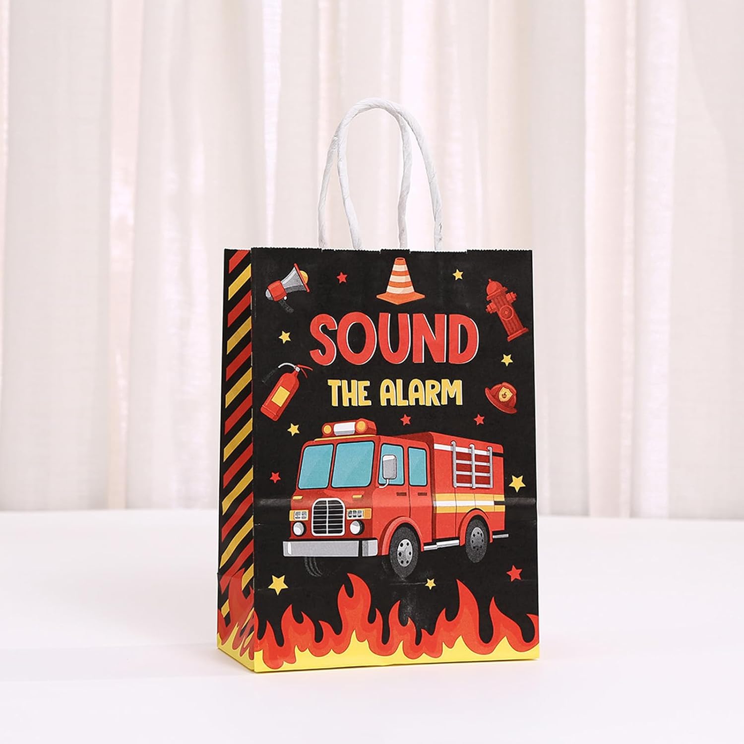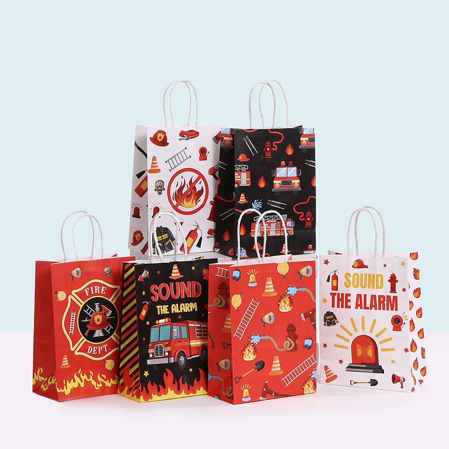 - Adorable Firefighter Theme: These gift bags feature charming firefighter and fire truck designs, perfect for kids' birthdays, fire safety awareness events, or themed parties.