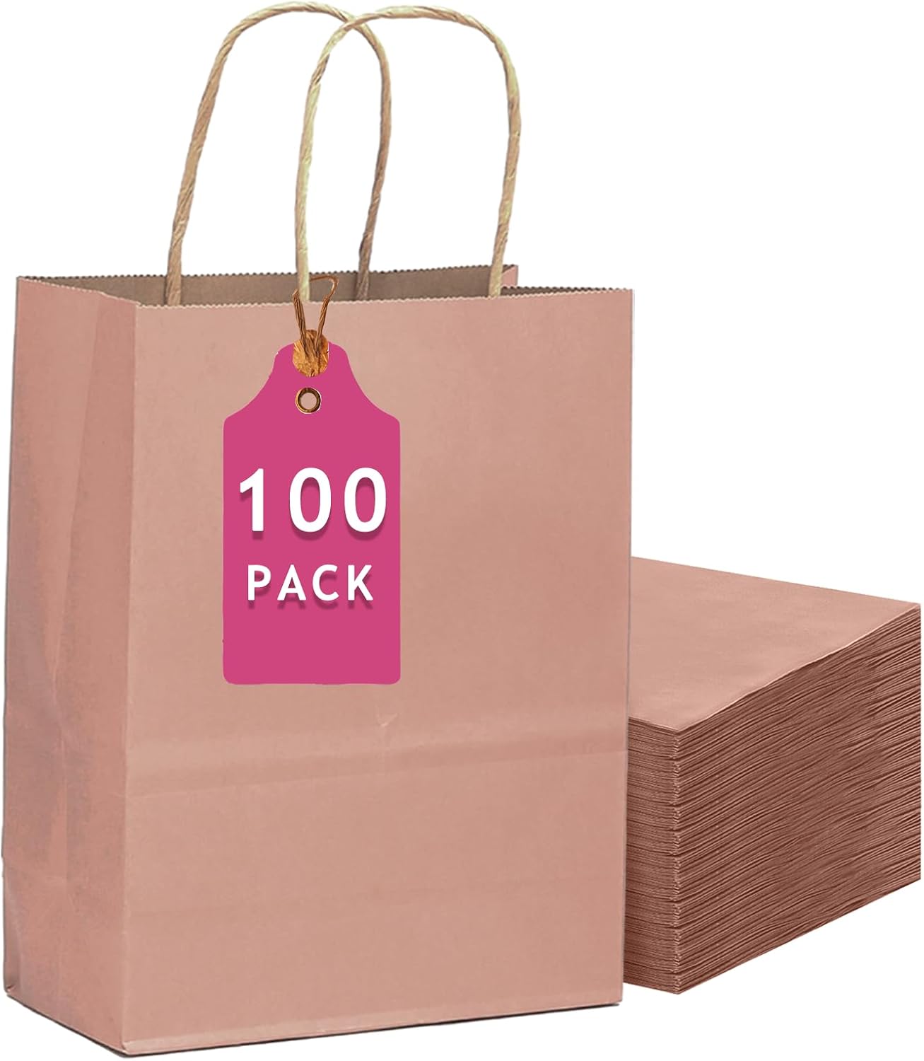 qiqee 100PCS Gift Bag with Handles Bulk Kraft Dusty Pink Paper Bags Multiple Uses (13"x10.3"x4.6"- Large Size)