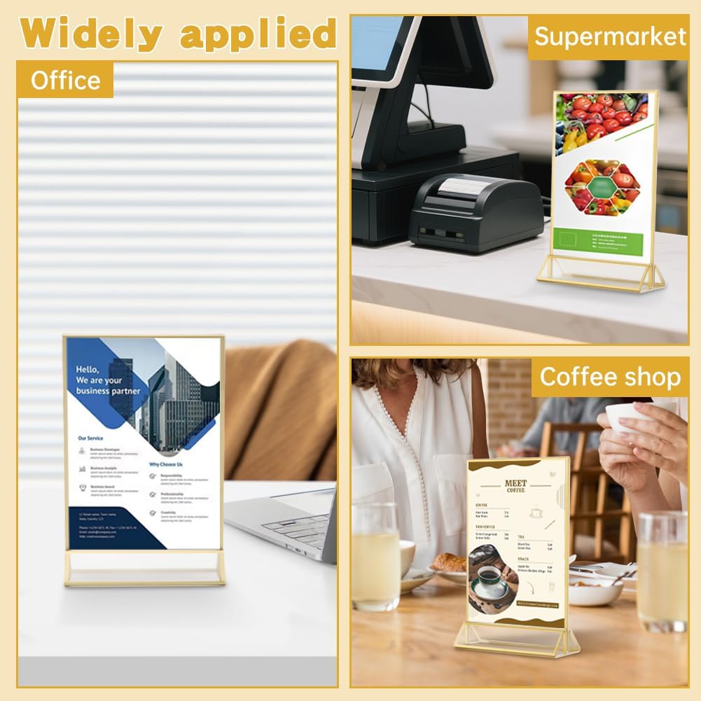 - 【Wide Application】This set of 12 gold acrylic gold sign holders combines functionality with aesthetic appeal, ideal for elevating the atmosphere of diverse events like weddings, baby showers, birthday parties, hotels, restaurants, cafes, or as double-sided transparent picture frames.