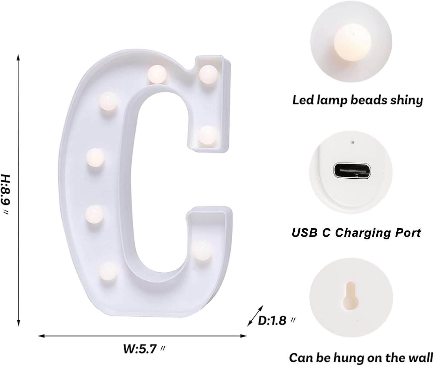 Foaky Rechargeable LED Letter Lights Sign Marquee Light Up Letters Sign for Night Light Wedding/Birthday Party Christmas Lamp Home Bar Decoration (C)