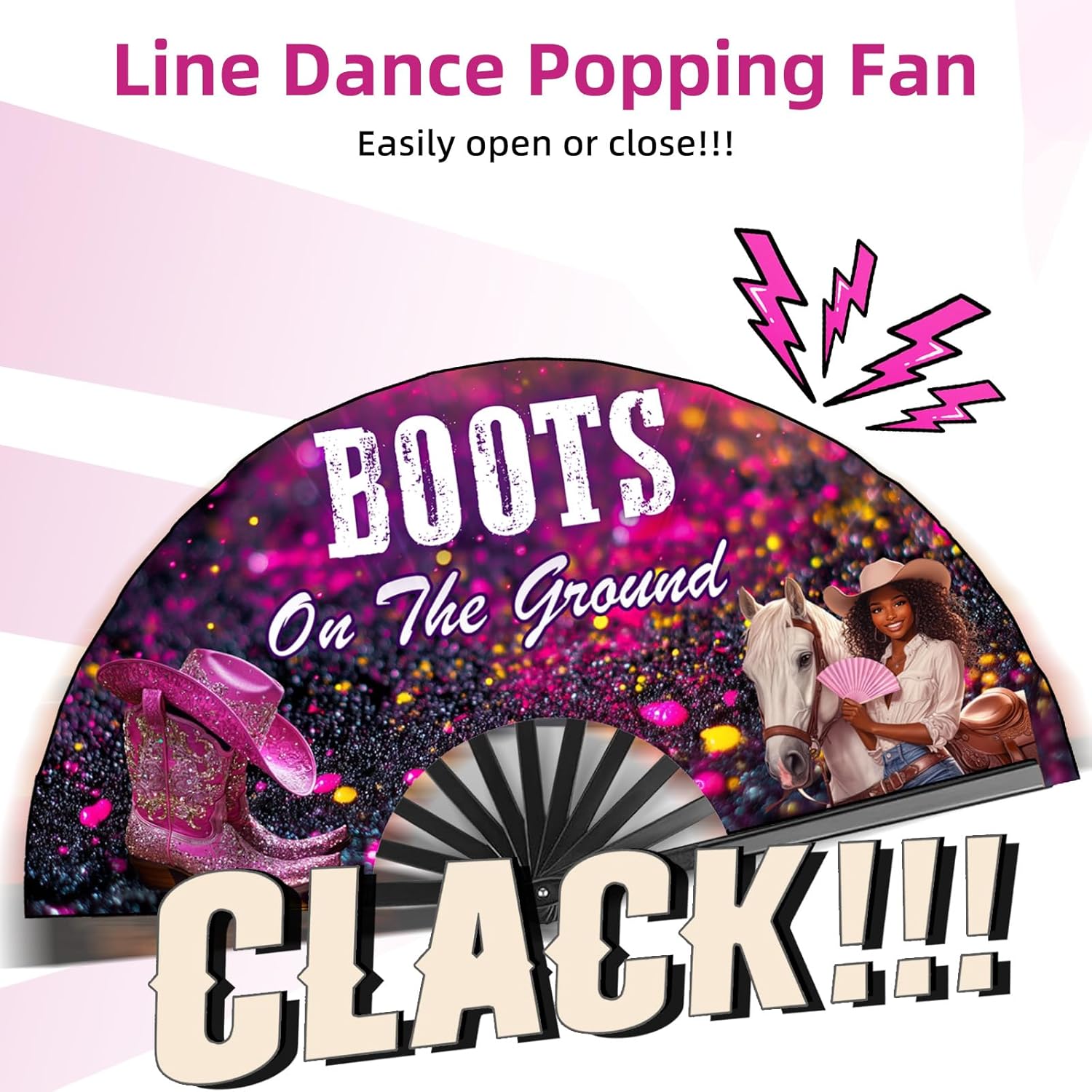 Boots on The Ground Hand Fan,2 Pack Clacking Fans for Line Dancing Folding Hand Classic,13'' Large Where Them Fans at Line Dance Popping Fan for Dance,Festival,Performance,Party