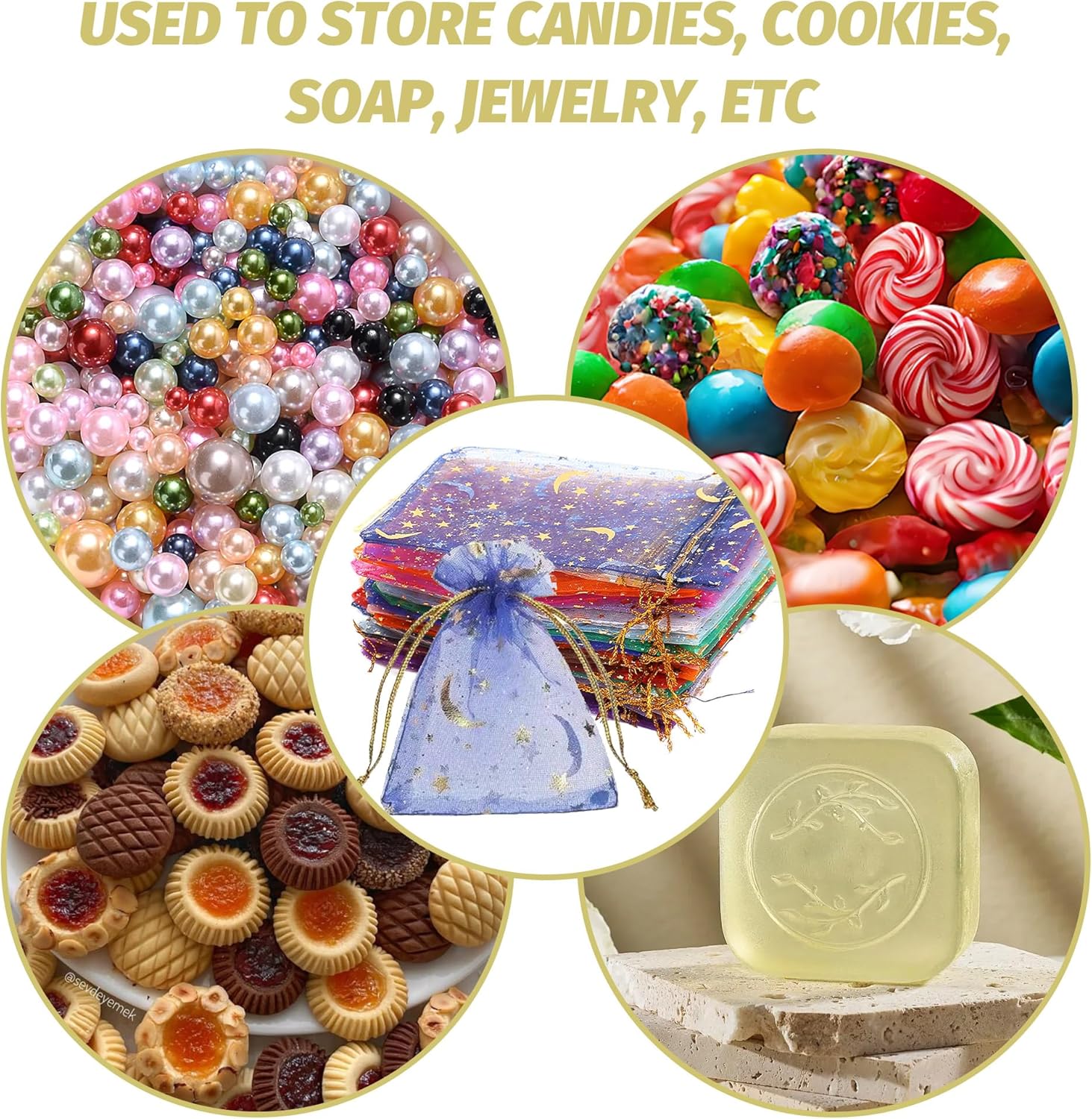 - Ample Quantity & Vibrant Colors: This bulk package includes 500 pieces of small organza bags featuring a delightful moon and star pattern. With a wide assortment of random colors, this generous quantity of organza bags 2x3 is perfect for your daily needs, party favors, and frequent replacements