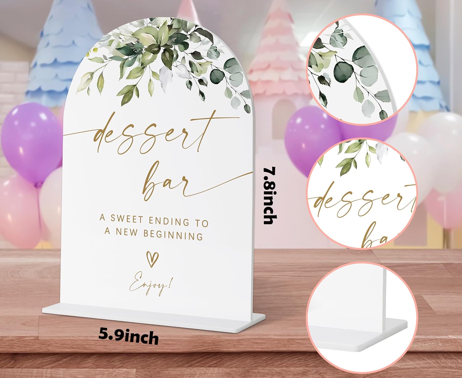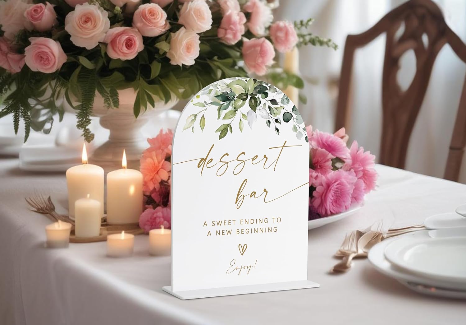 Dessert Bar Sign, Greenery Gold Bridal Shower Decorations, Dessert Table Decor, Wedding Signs for Ceremony and Reception, Engagement Decorations, Acrylic Decor, Bachelorette Party Favors-19