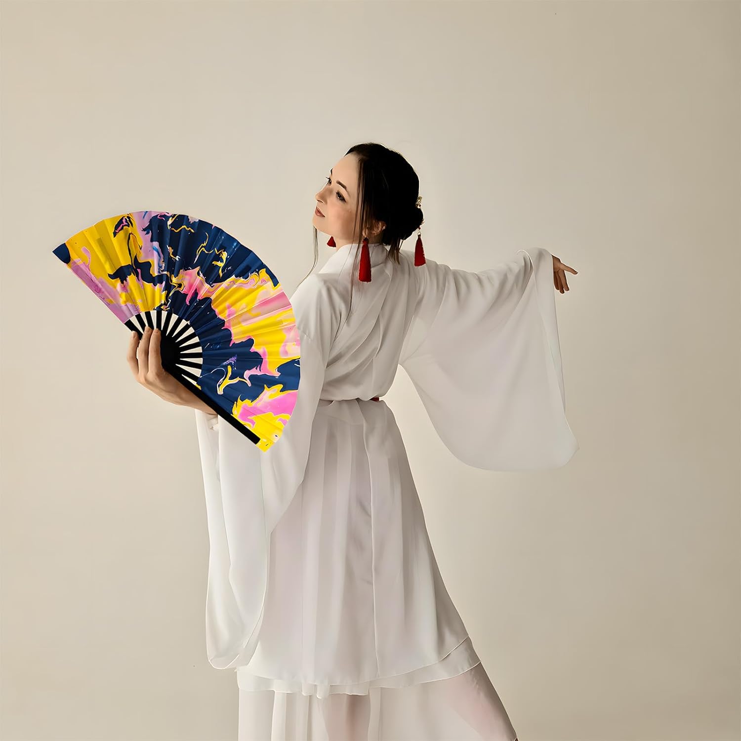 - Premium Quality - Each folding fan is handcrafted by us to ensure it perfectly fits your needs. Made with selected natural bamboo frames, they are lightweight, durable, and long-lasting. Whether for stage performances or daily wear, this exquisite hand fan adds a dynamic charm to your style, becoming the shining highlight of the entire scene!