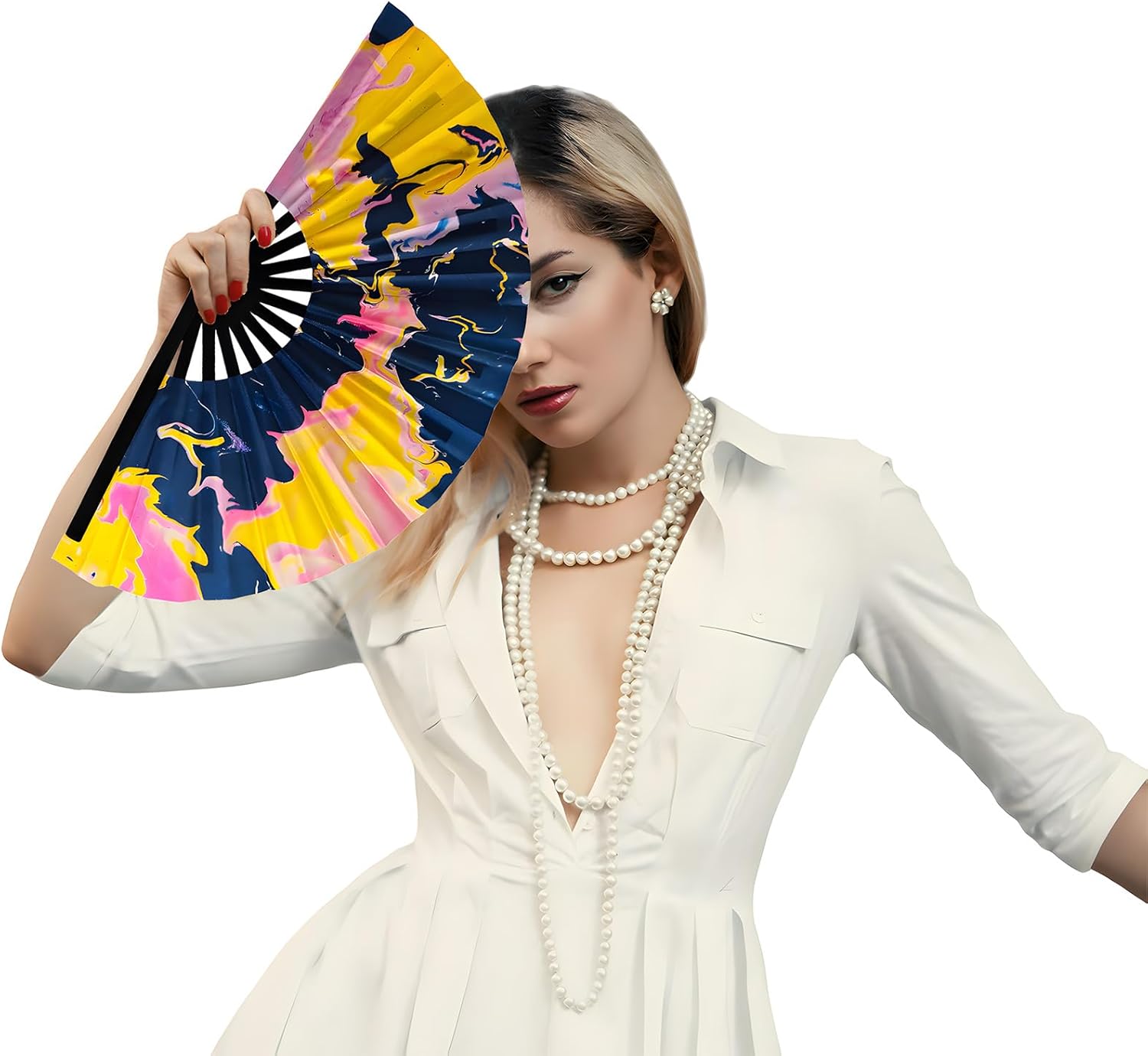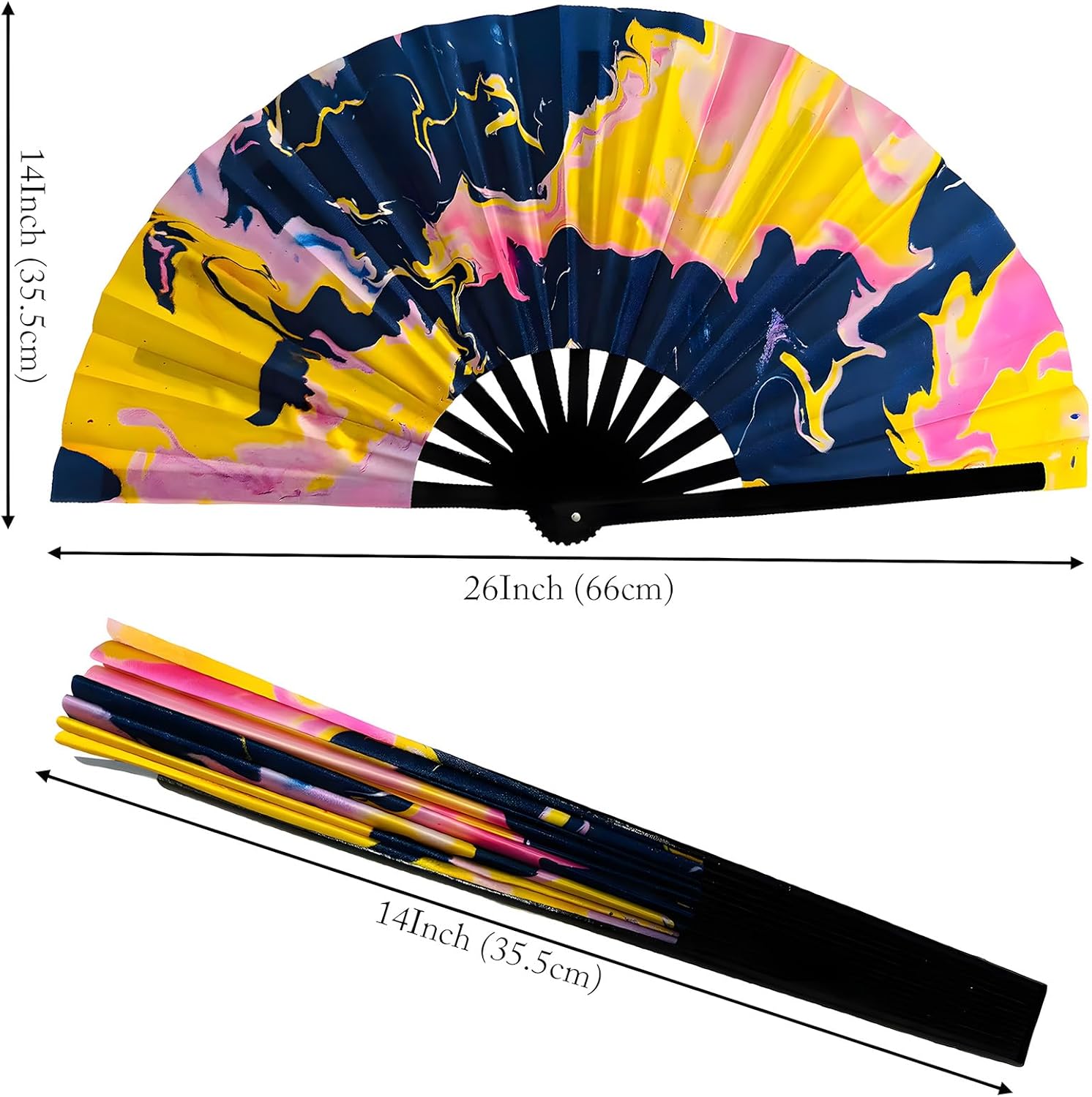 - Materials and Specifications - Our rave hand fans are made of natural bamboo, lightweight and easy to carry, colorful and beautiful, not easily breakable. Each fan size is approximately 14 Γ 26 inches / 35.5 x 65.5 cm (L x W, unfolded state)