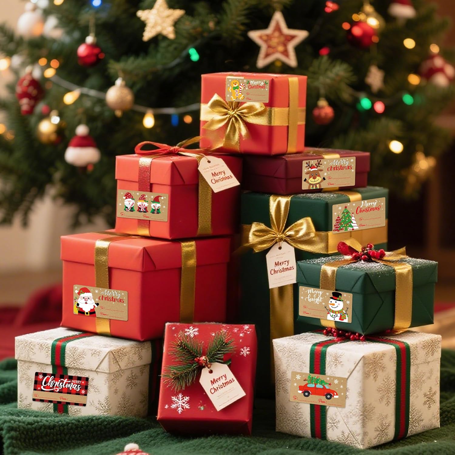 - Spacious Size & Strong Adhesion: Each Christmas Present Tags measures 3 x 1.6 inches, Printed with "To:" and "From:" fields,providing ample space for handwritten messages. These labels adhere smoothly to wrapping paper, gift boxes, and envelopes—without curling or leaving residue