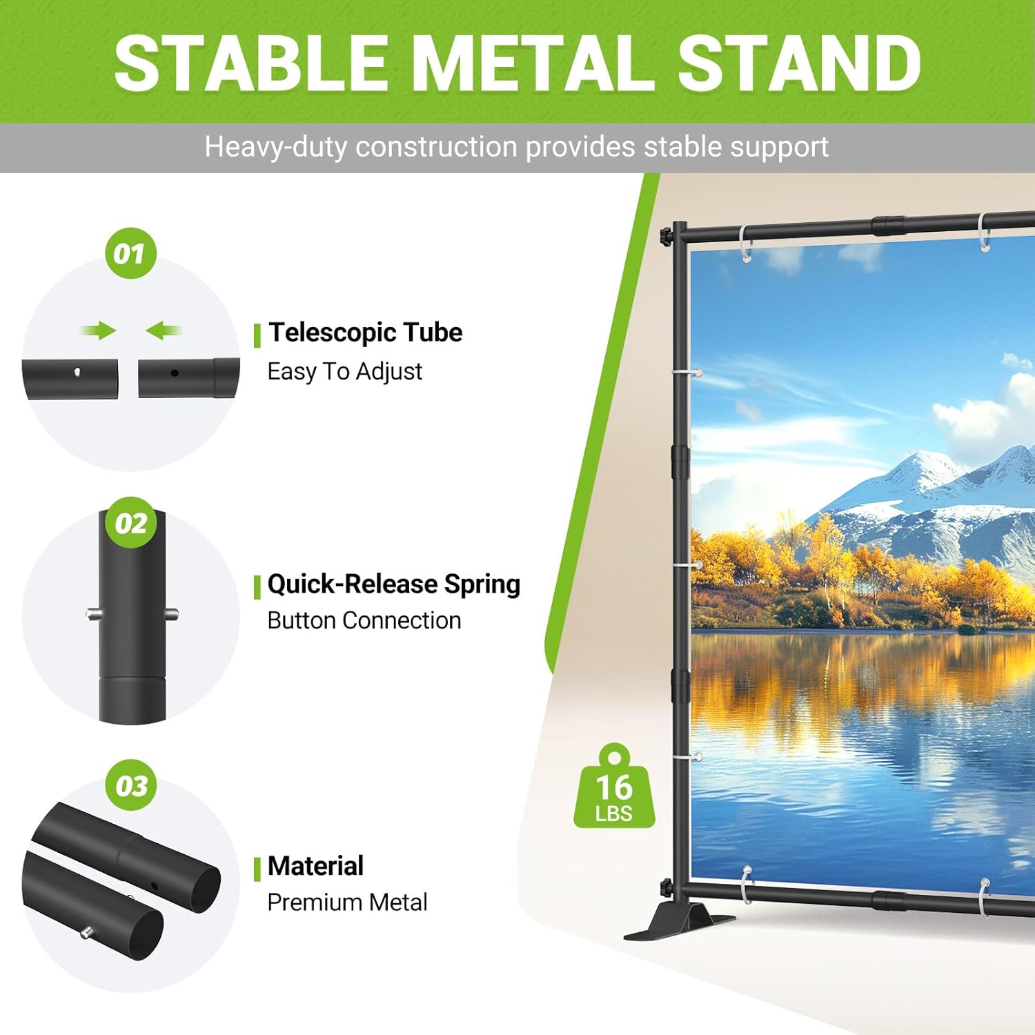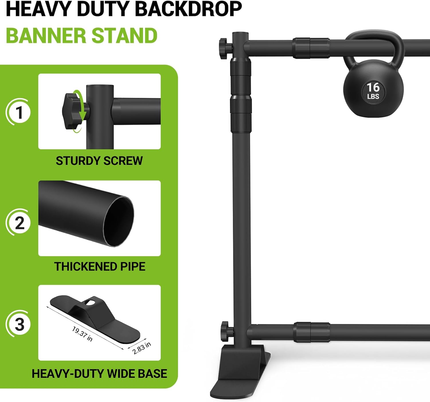 - [Versatile Use] This durable and heavy duty backdrop stand is perfect for supporting various styles of backgrounds or banners. It's ideal for conferences, photo displays, local fairs, shop promotions, and photo booth backdrops, and includes a carry bag for easy transport.