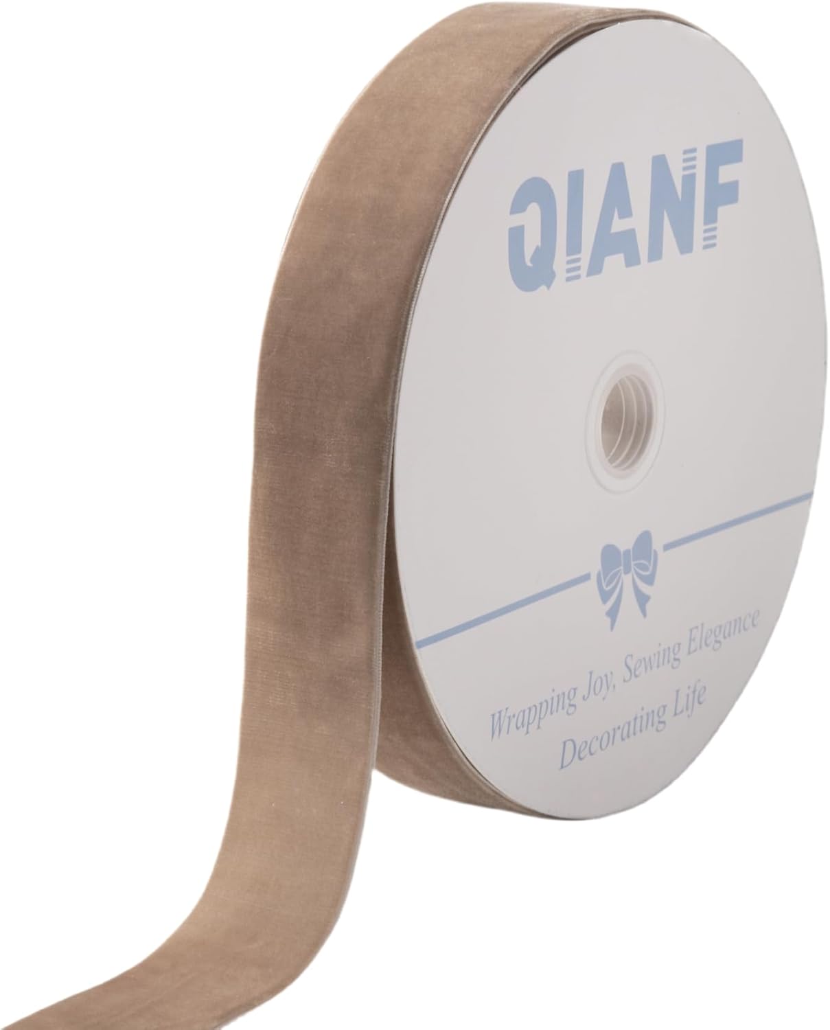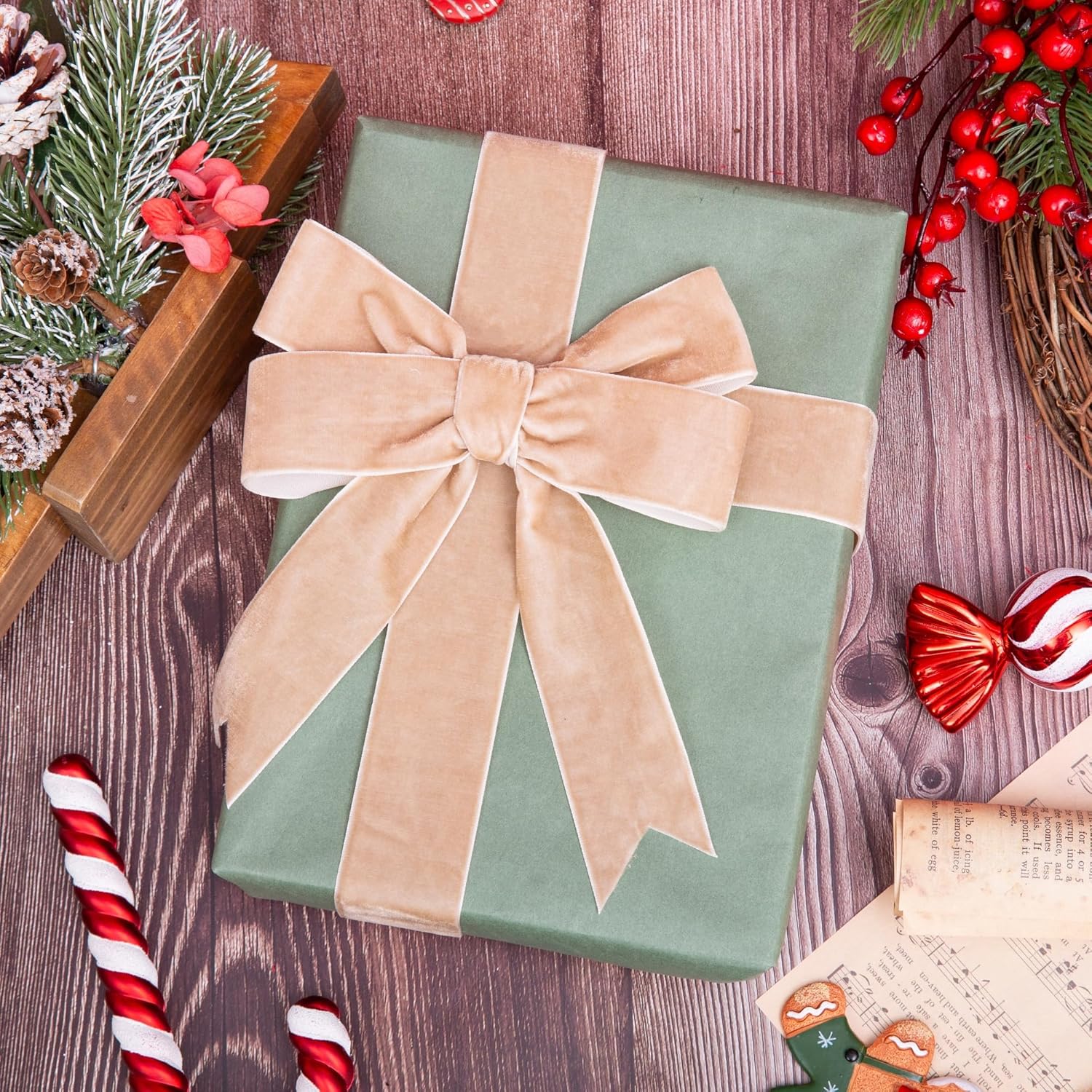 Vintage Camel Velvet Ribbon Christmas Ribbon for Gift Wrapping Crafts Christmas Tree Ornaments Garland Decorations, 1-1/2 Inch X 25Yd