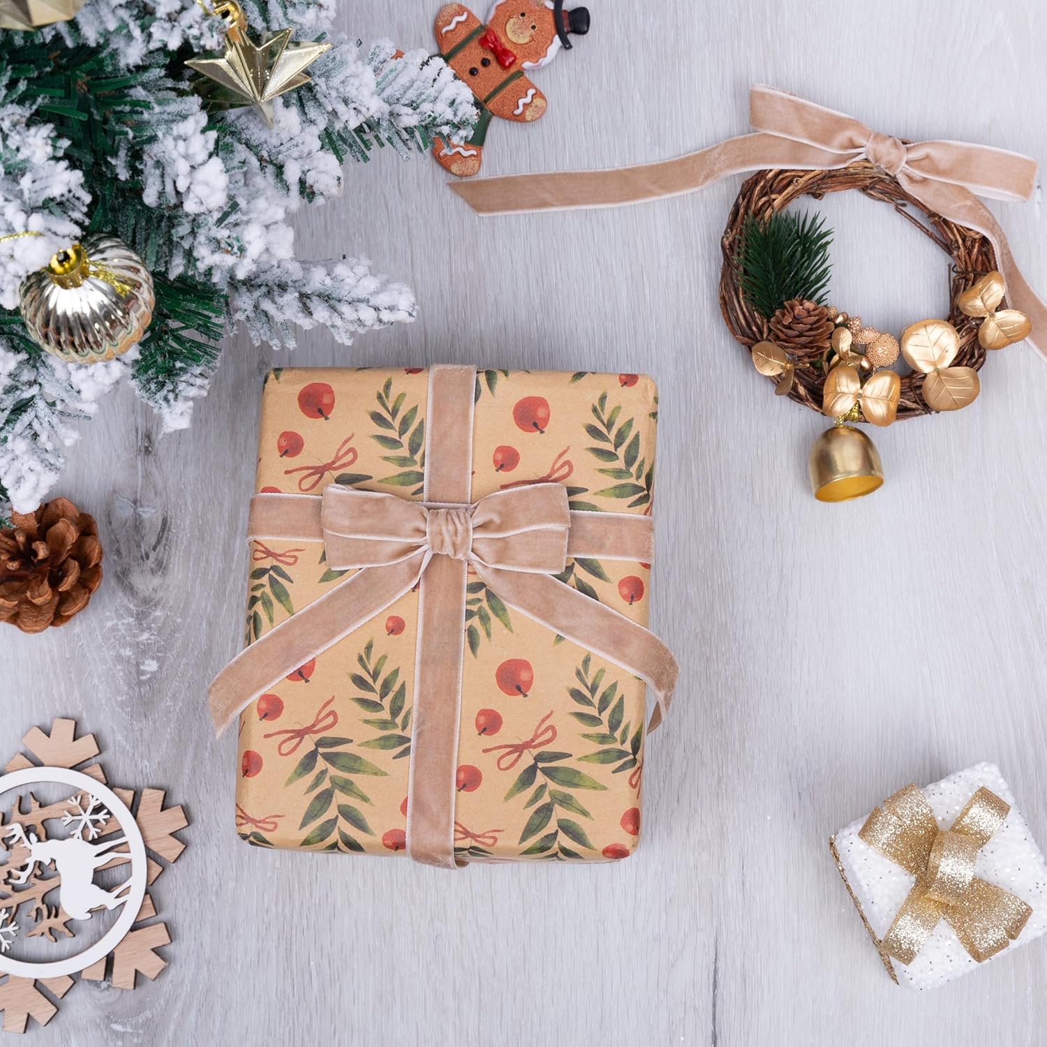 Vintage Camel Velvet Ribbon Christmas Ribbon for Gift Wrapping Crafts Christmas Tree Ornaments Garland Decorations, 5/8 Inch X 25Yd