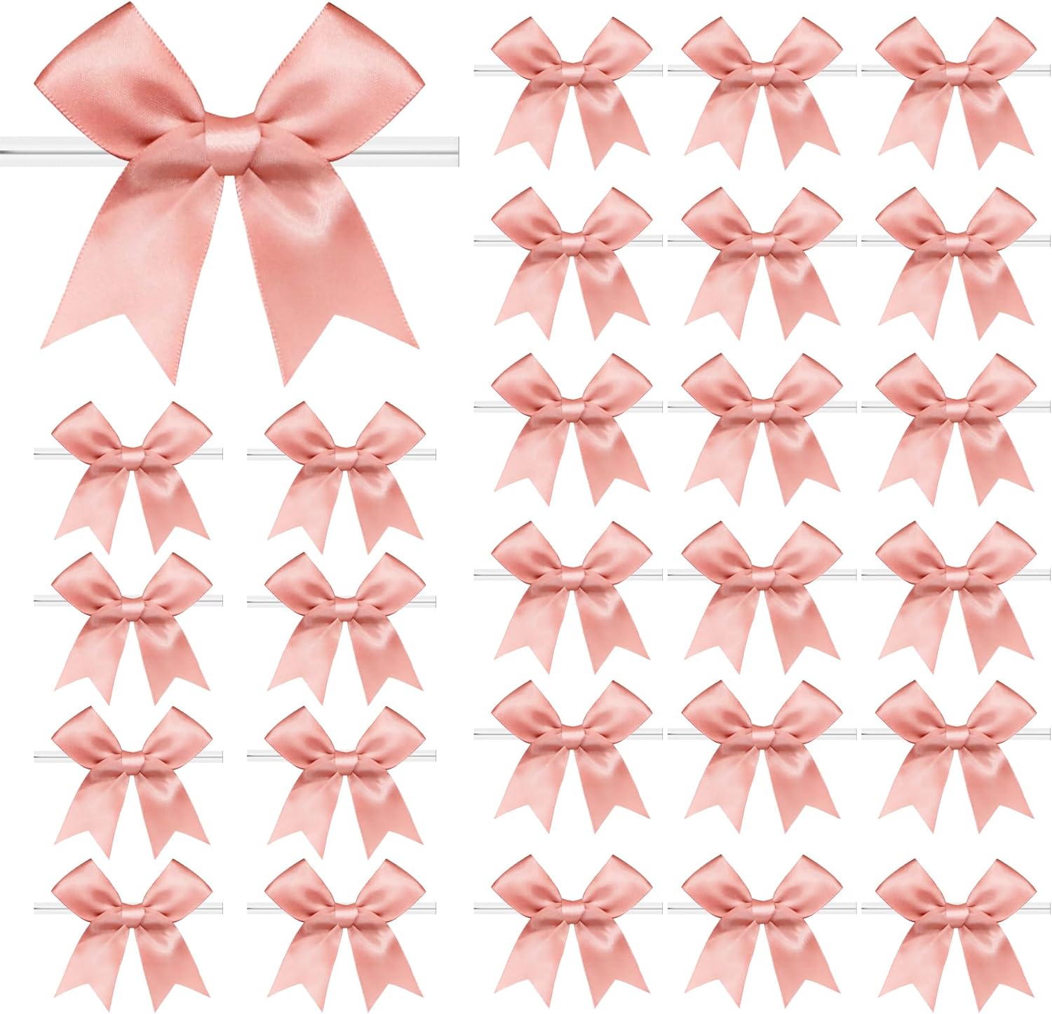 - 【What's Included】50 Pcs satin ribbon Bows and 50 Pcs Twist Ties beautifully crafted bows packed together, providing ample options for various decoration needs.Their uniform size ensures consistency in your decorations.