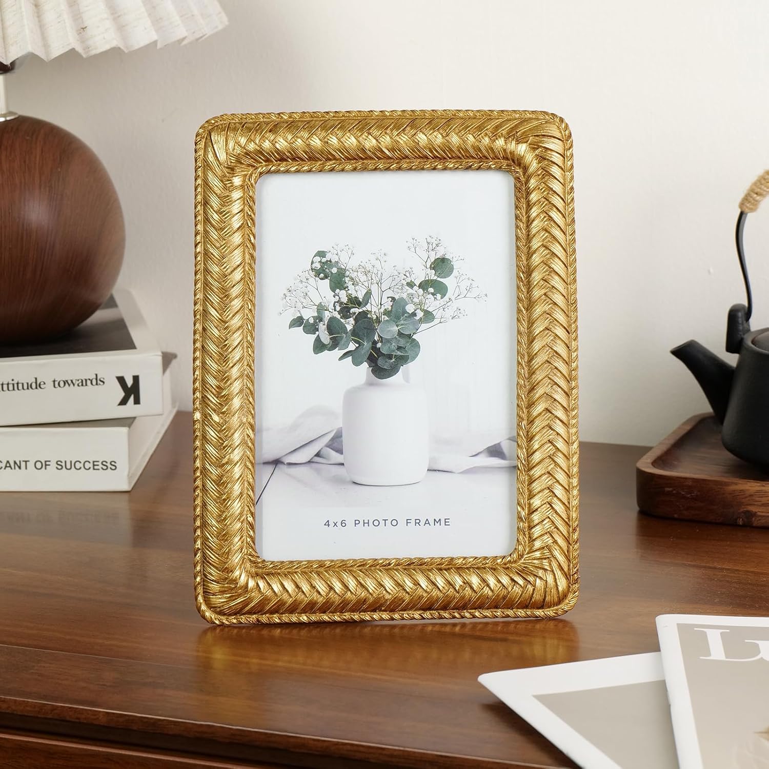 - Gold Picture Frame: Add a touch of timeless elegance with this 4x6 picture frame. The woven pattern brings warmth and texture, blending modern simplicity with classic charm.