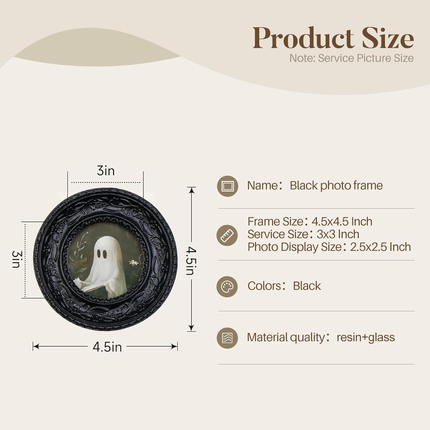 - Vintage Baroque Frame Set of 2: Includes one 3x3-inch round frame and one 4x6-inch rectangular frame. Each features delicate baroque carvings and a classic black finish, combining antique charm with modern elegance.