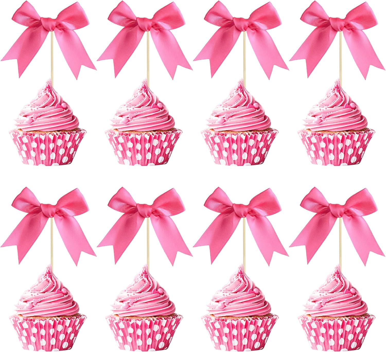 - --Premium Material: These Bow Cupcake Toppers are made of high quality polyester satin ribbon, very safe to put them on cakes, cupcakes, ice cream, fruits, pie, dessert, cheese or any dish and food appetizer you want to decorate bow theme party decorations.