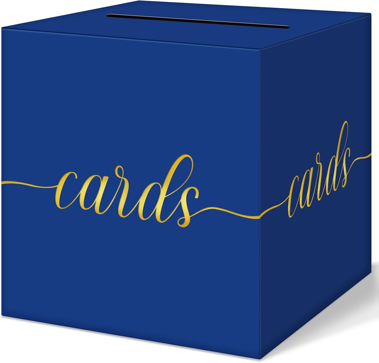 QIKSION Blue Graduation Card Box, Gold Foil Gift Card Box for Party, Graduation, Wedding Reception, Birthday, Baby Shower, Raffle