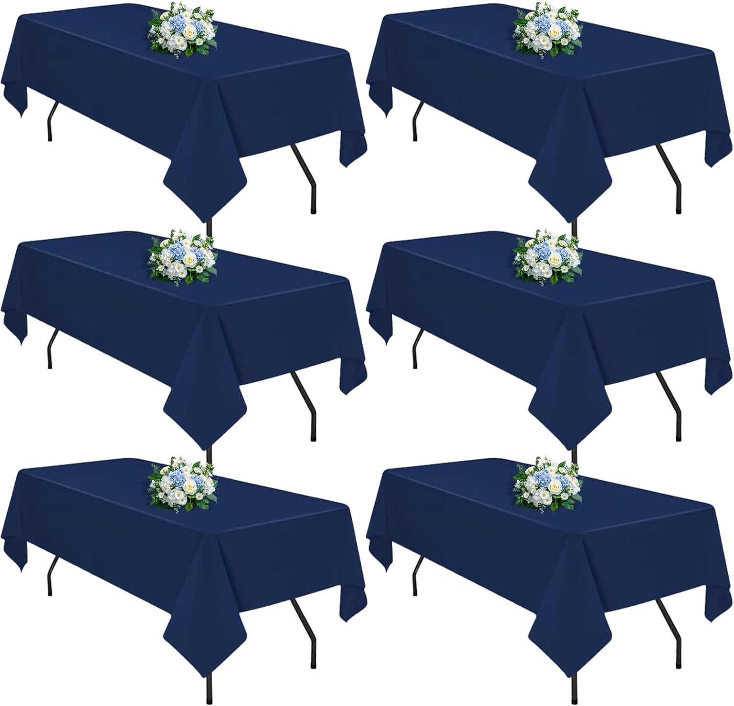 Navy Blue 6 Pack Polyester Table Cloth 60 x 102 Inch, Rectangle Tablecloths for 6 Foot Tables Washable Table Cloth for Party Wedding