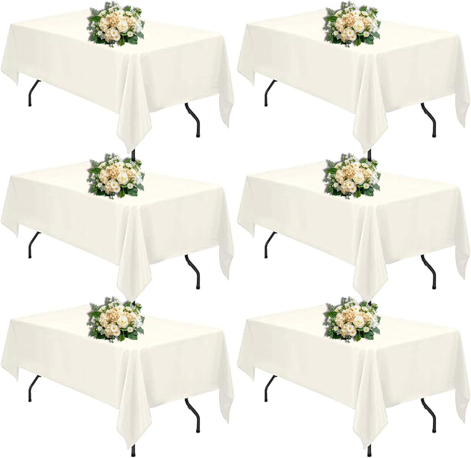 Ivory 6 Pack Polyester Table Cloth 60 x 84 Inch, Rectangle Tablecloths for 6 Foot Tables Washable Table Cloth for Party Wedding