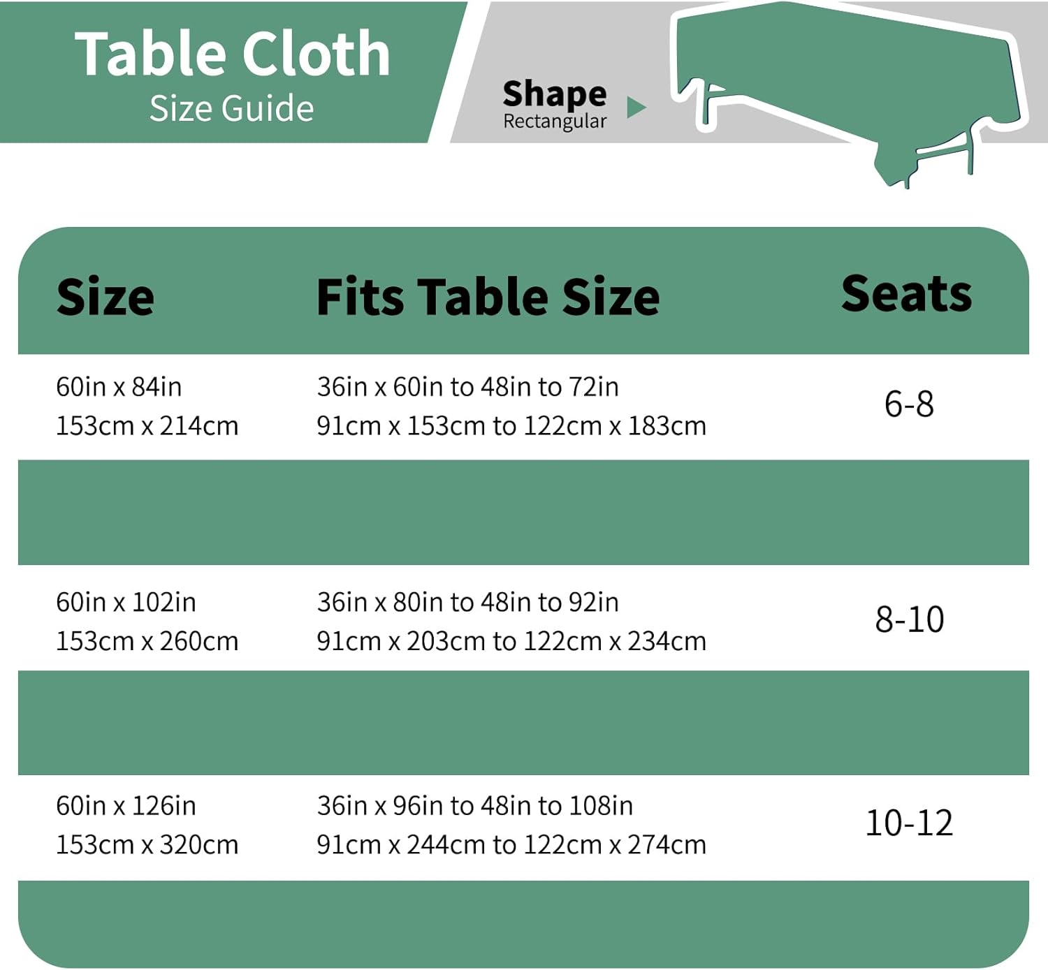 - Perfect Size: The table cloths are 60 x 84 Inch for 6FT rectangular table. This rectangle tablecloth is perfect for protecting and decorating your table.