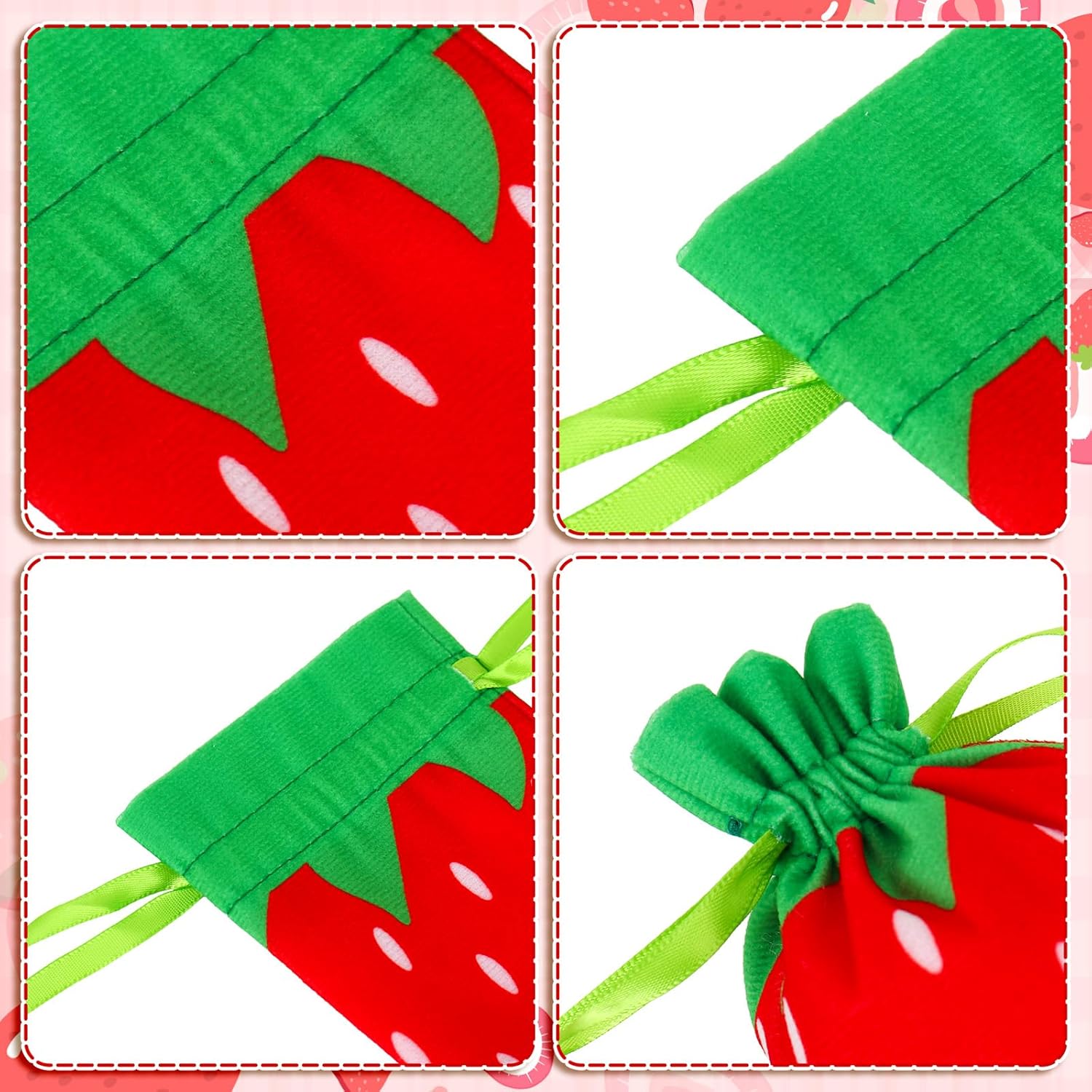 - Strawberry Design: These drawstring bags feature a cute strawberry shape with vibrant red and green colors, perfect for adding a sweet touch to gifts, party favors, or small item storage