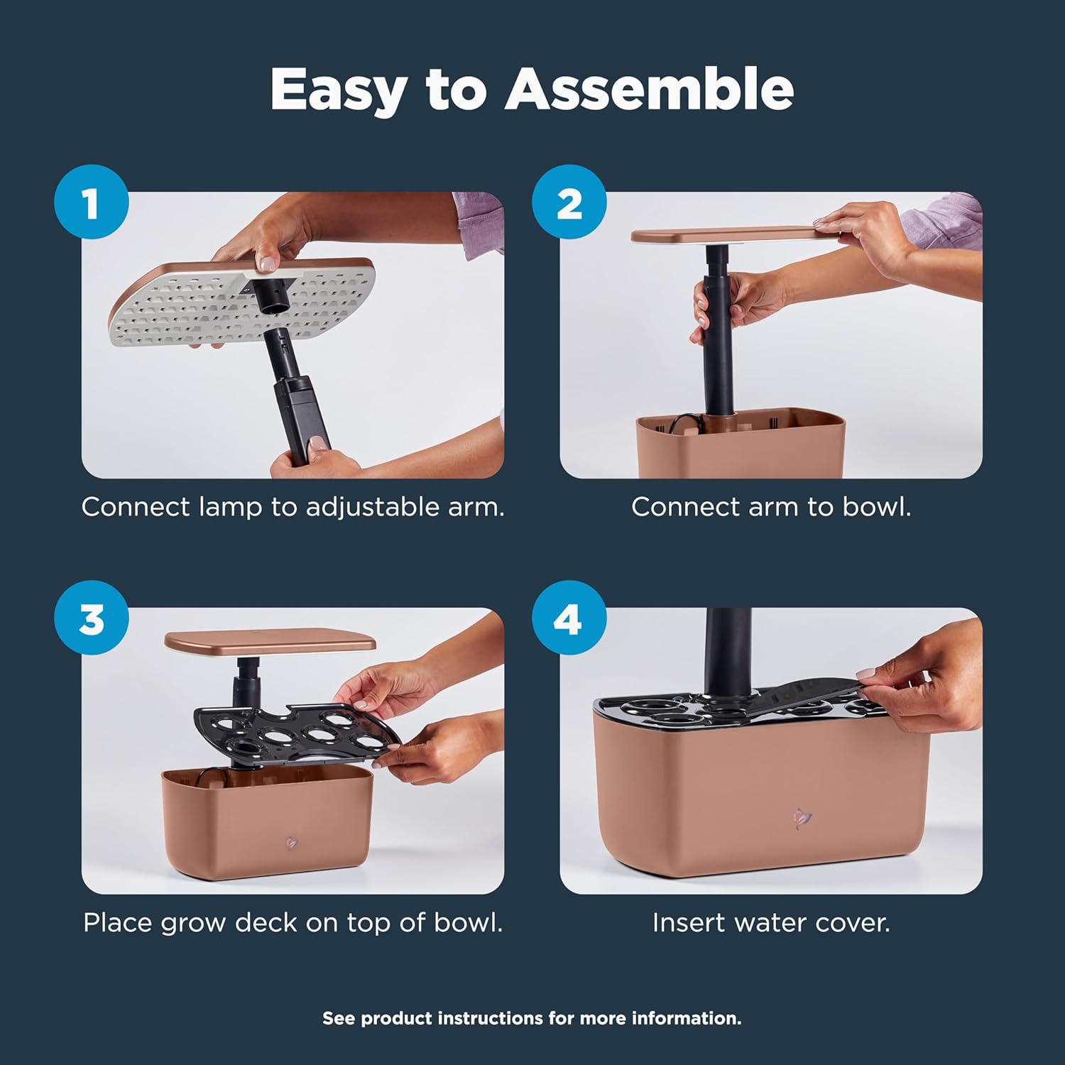 - FEATURES: In addition to its trendy aesthetics, the targeted grow light means more light on your plants and less on the surrounding area, plus the Harvest Lite features a one-button control nutrient reminder, and a dark grow deck to help prevent algae growth in the reservoir