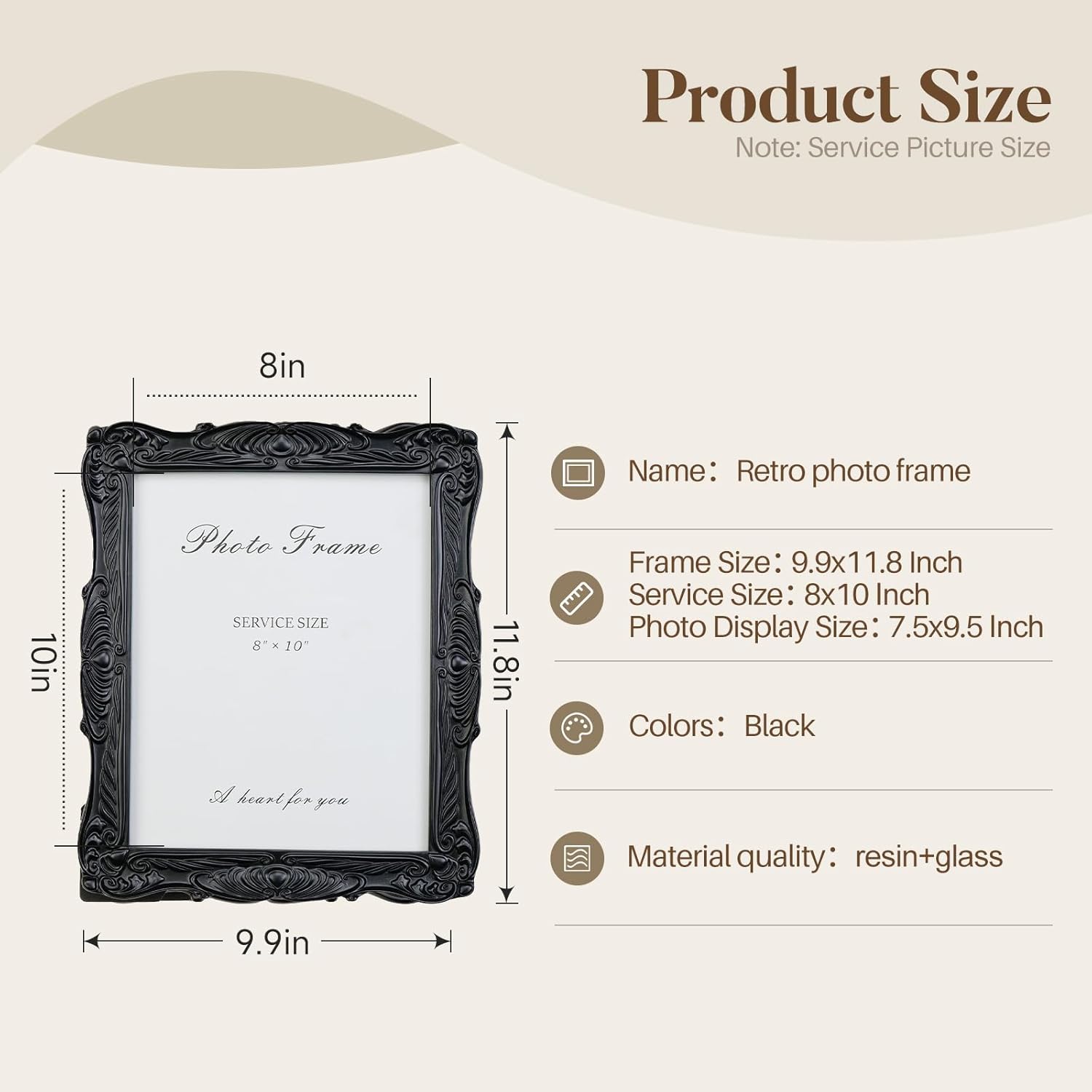 - Durable Resin Craftsmanship: Made of high-quality resin with exquisite baroque-style carvings, this frame combines durability with artistic beauty for long-lasting display.