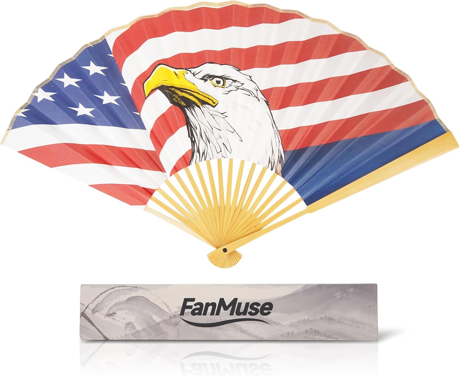 Bamboo & Paper Folding Hand Fan – Chinese Craft with Patriotic Bald Eagle American Art Design, Decorative Handheld Fan with Elegant Gift Box for Wedding, Party, Travel & Home Décor