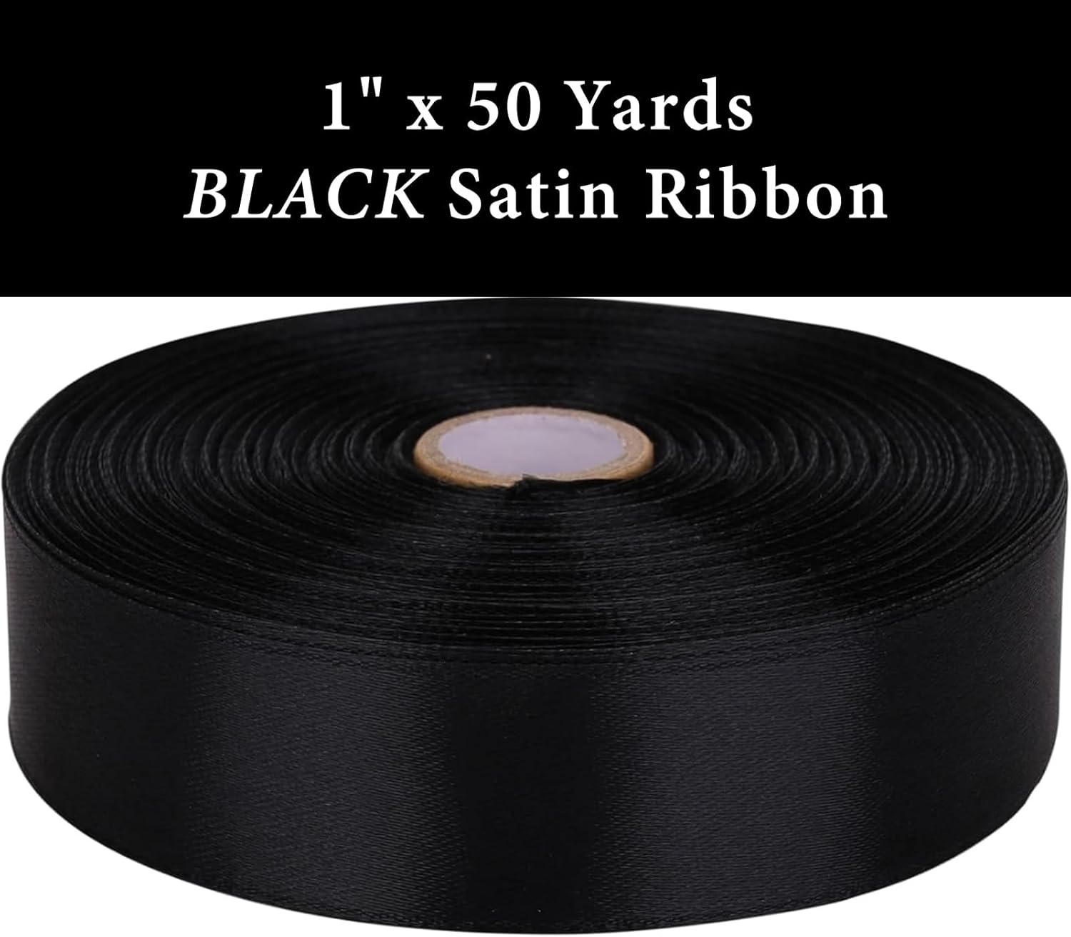 1" x 50 Yards Black Satin Ribbon Single Faced Fabric Ribbons for Gift Wrapping, Crafting, Bows Making, Flower Bouquet, Wedding, Home Decor