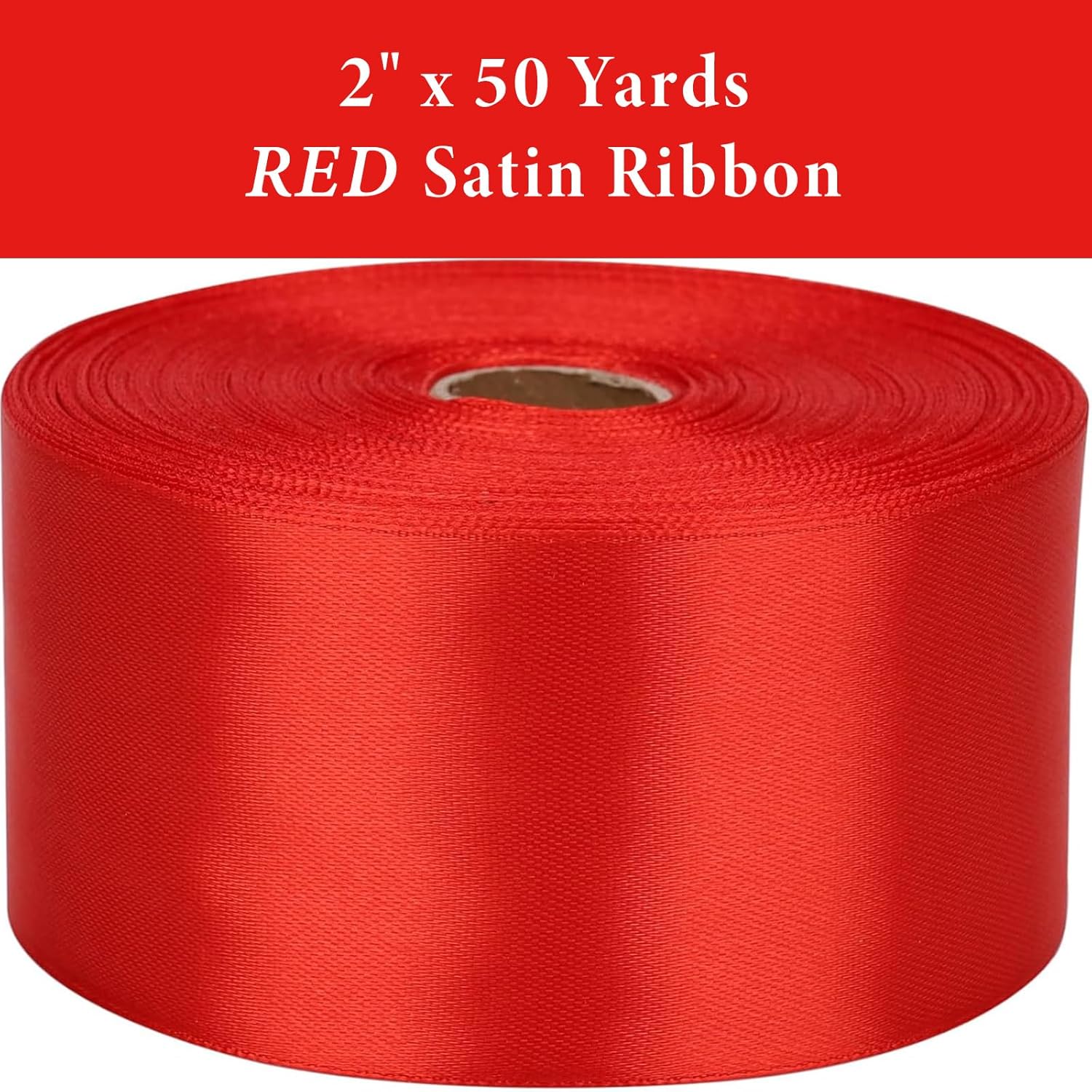 2" x 50 Yards Red Satin Ribbon Single Faced Fabric Ribbons for Gift Wrapping, Large Crafting Projects, Flower Bouquet, Wedding, Home Decor