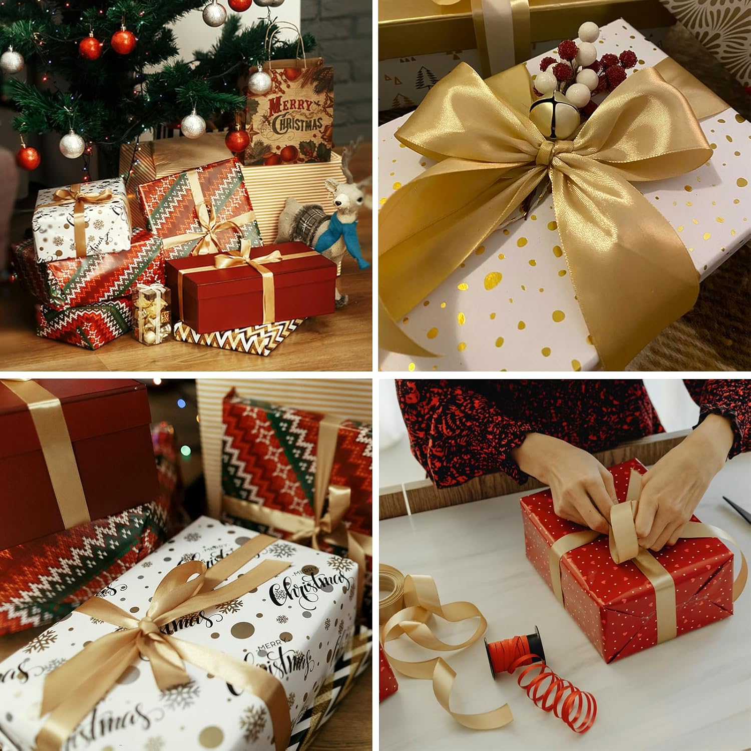 3/8" x 230 Yards Gold Satin Ribbon Single Faced Bulk Fabric Ribbons for Gift Wrapping, Crafting, Scrapbooking, Bows and Card Making