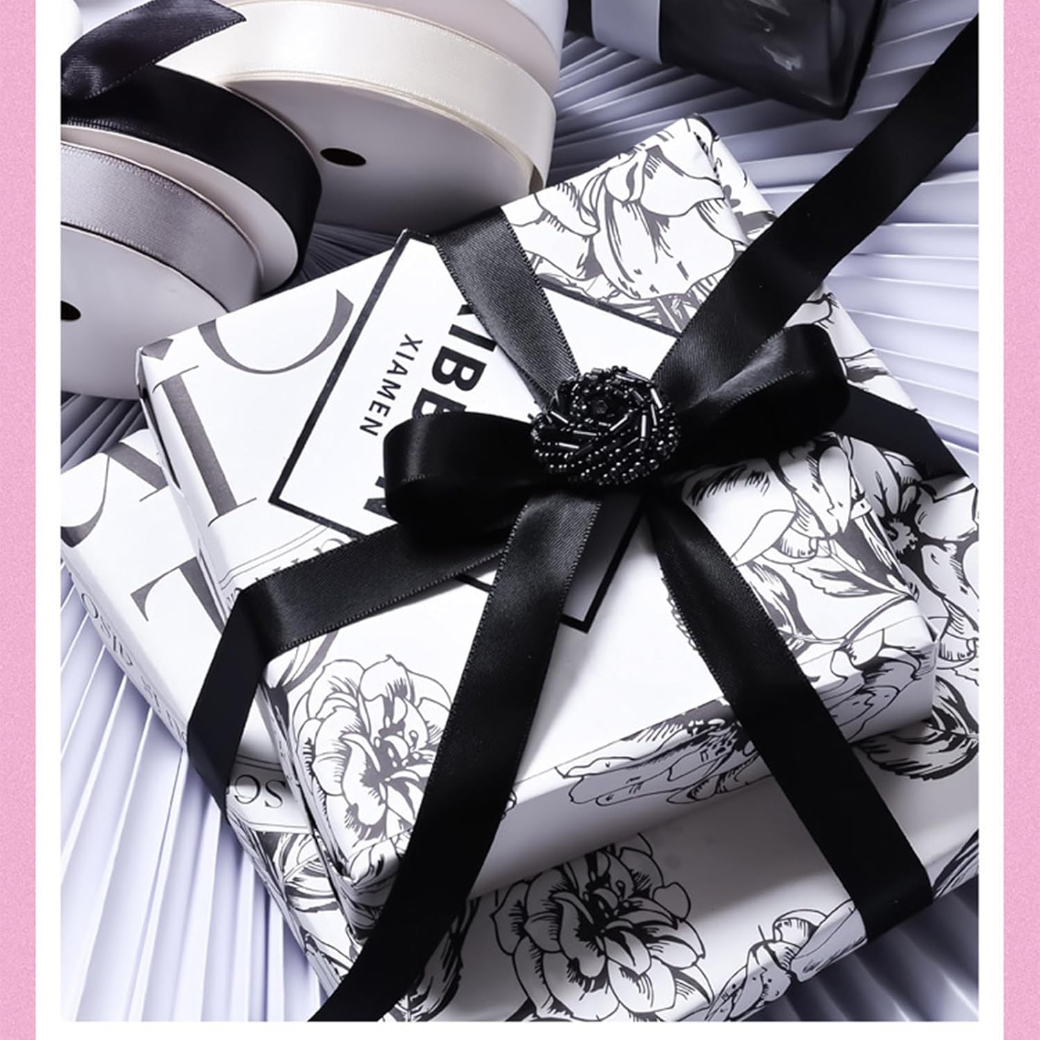 5/8" x 50 Yards Black Satin Ribbon Single Faced Fabric Ribbons for Gift Wrapping, Crafting, Bows Making, Sewing, Wedding, Home Decor