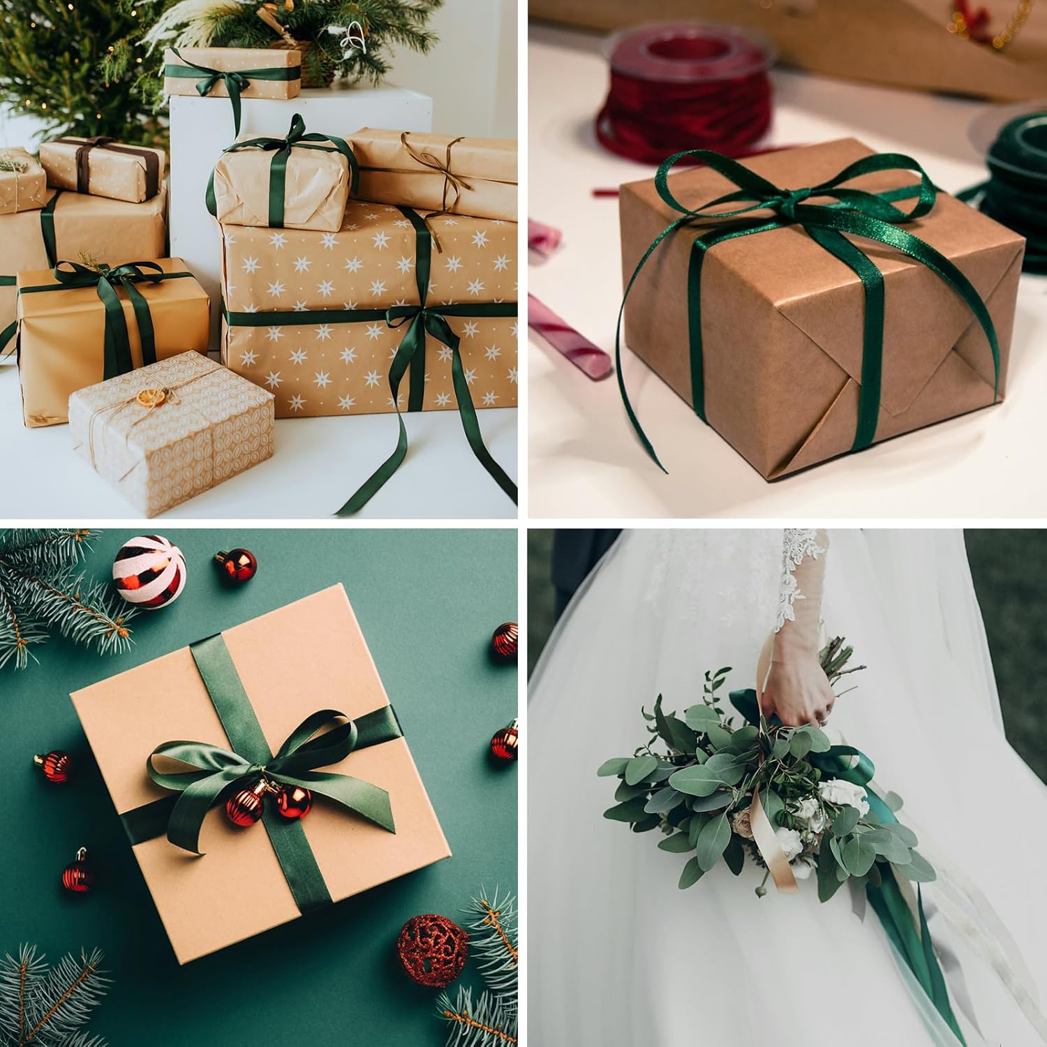 5/8" x 50 Yards Forest Green Satin Ribbon Single Faced Fabric Ribbons for Gift Wrapping, Crafting, Bows Making, Sewing, Wedding, Home Decor