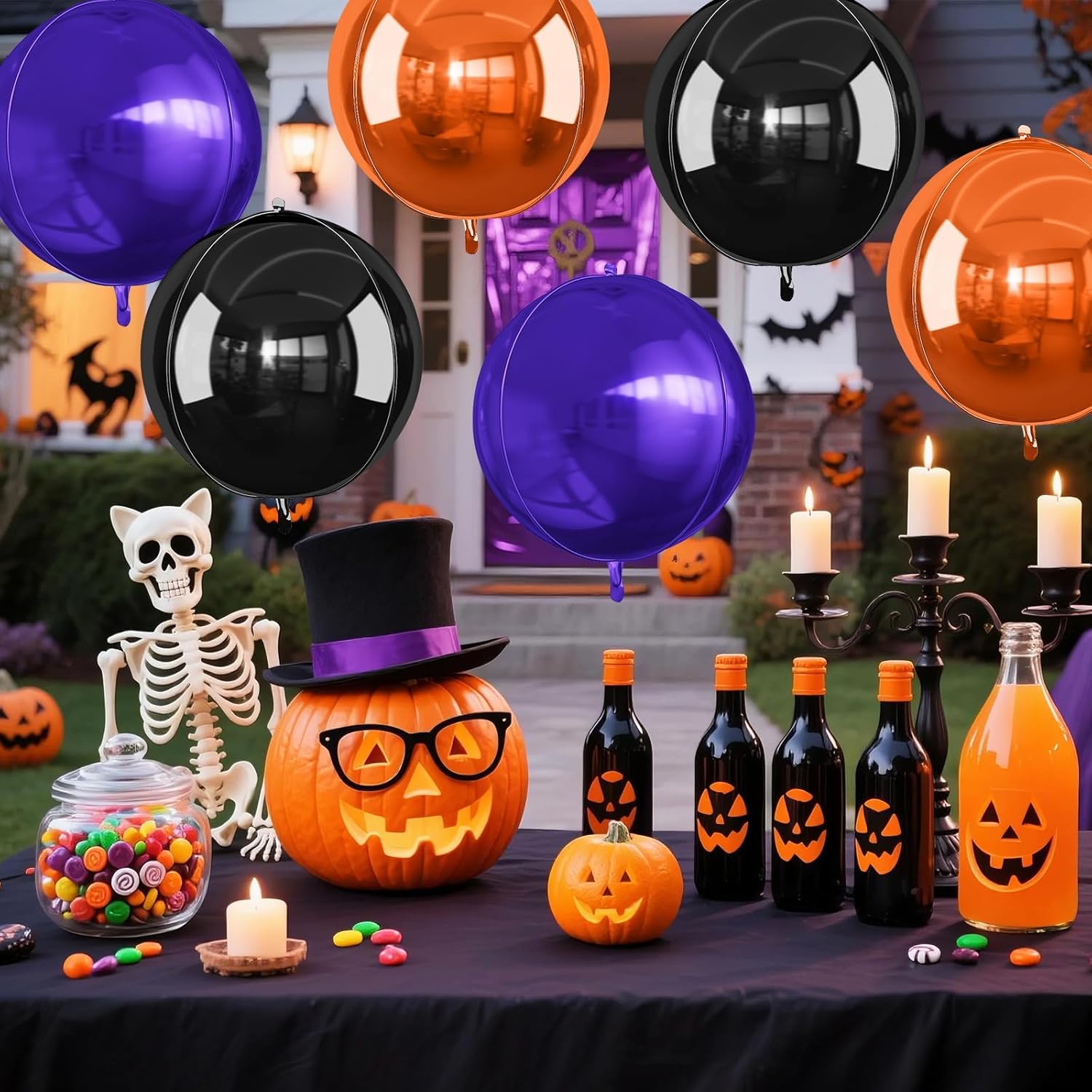 - Package: This halloween party decorations set includes 6pcs 22inch 4D round foil balloon, 2pcs black foil balloons + 2pcs orange foil balloons + 2pcs purple foil balloons+ 1 straw + 1 roll of ribbon. Ideal sizes and vibrant colors are perfect for enhancing your Halloween theme and creating a memorable ambiance.