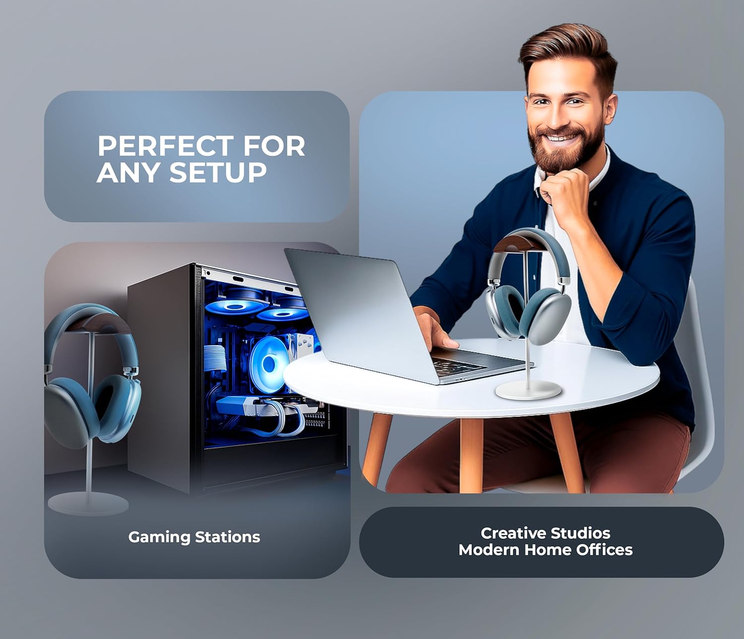 - Stable and Protective: Featuring a non-slip metallic base, this headset stand for desk keeps your headphones safe from falls and scratches while maintaining easy access.