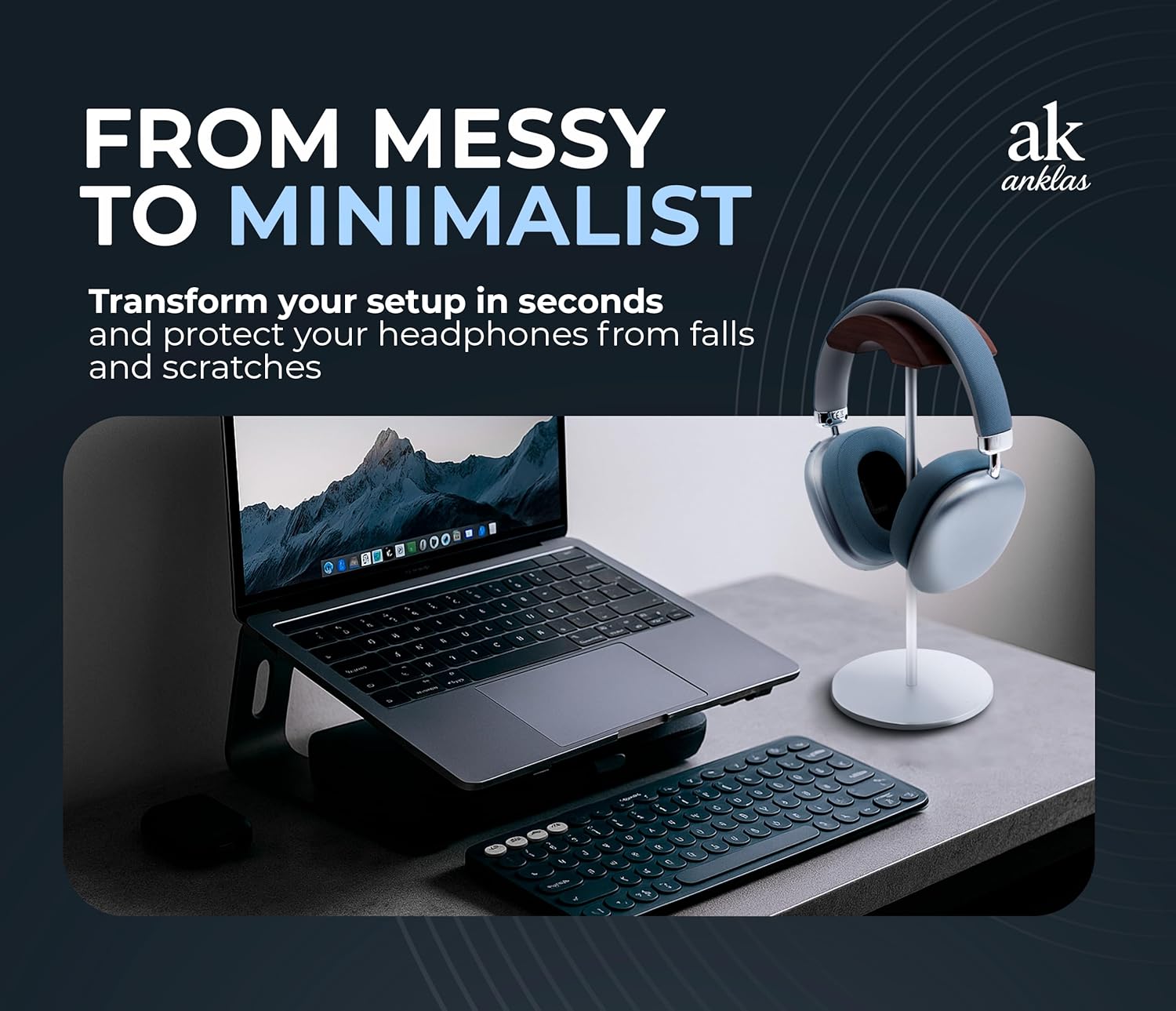 - Elegant and Functional Design: The AK Anklas Minimalist headphone stand combines a smooth bamboo arch with a metal base, adding style and organization to any desk or workstation.