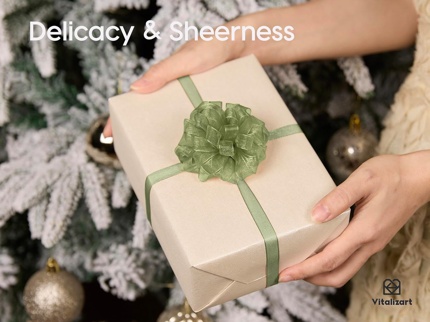 Vitalizart 3/8" x 30Yd Organza Ribbon Green Sheer Ribbons Set 10 Yd x 3 Rolls Drak Green Sage Handmade Eco-Friendly for Gift Wrapping Christmas Tree Crafts Bows Wedding Invitations Wreaths Wrap