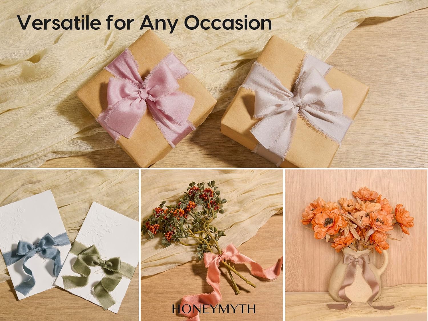 - Handmade Frayed Edge – Vintage & Elegant Each ribbon is finished with delicate handmade frayed edges, creating a soft, rustic charm that blends vintage elegance with modern creativity.
