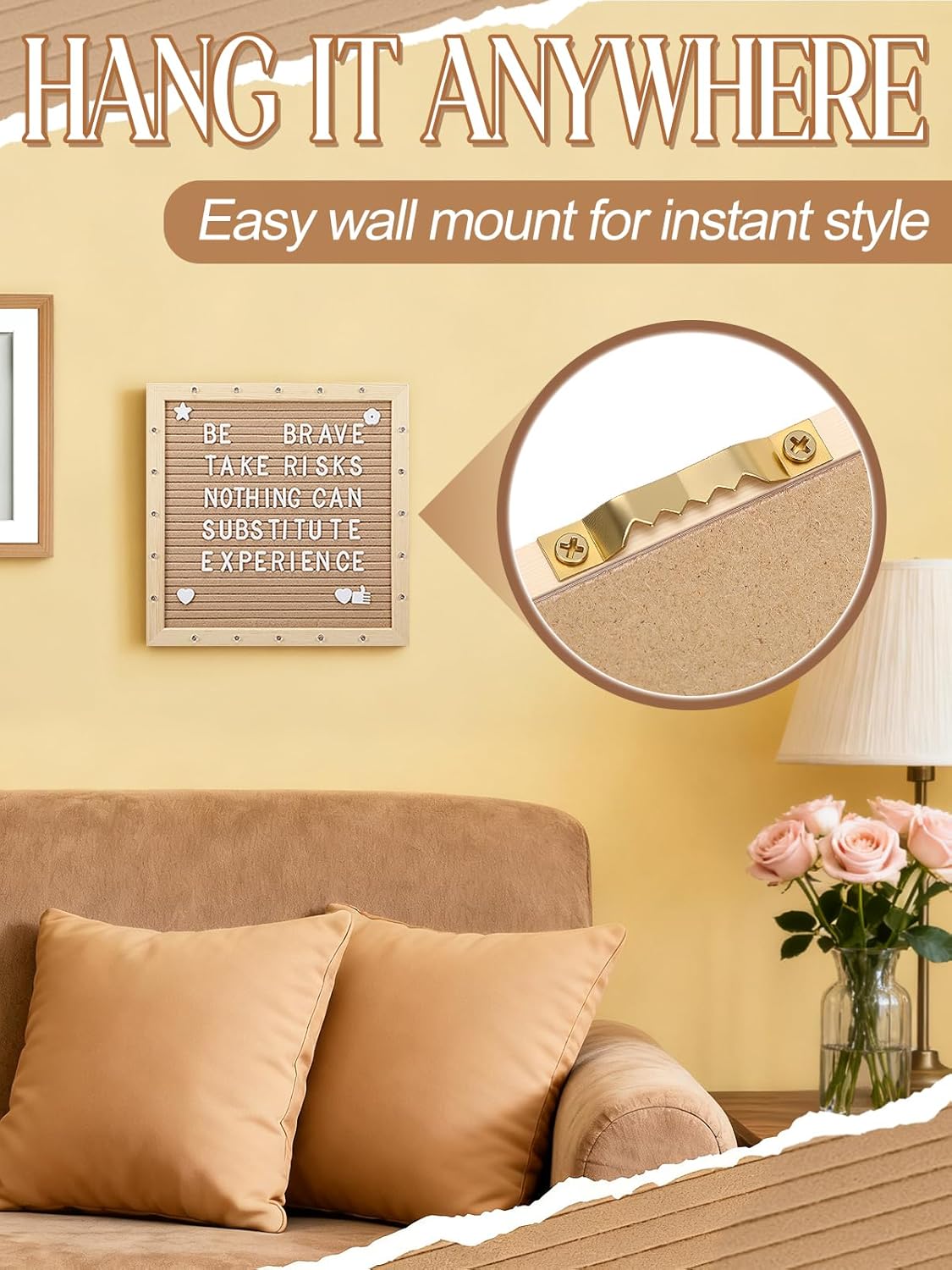 - Letter Board Sign Set: This felt letter board set includes a 10×10in classic camel felt board with a rustic wood frame, a sturdy wood tripod stand, a canvas bag, and 450 white changeable letters. Great to create a fun custom sign for any corner of your home