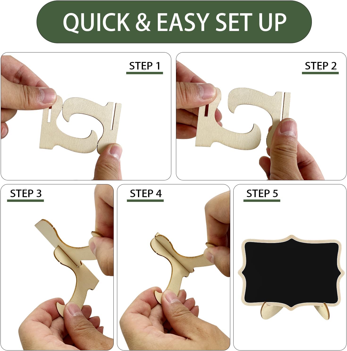 - [Elegant&fun design] : 10x7.5cm wood board with elegant waved edge,The easel stand that can be easily disassembled and assembled adds fun to your upcoming event and party.